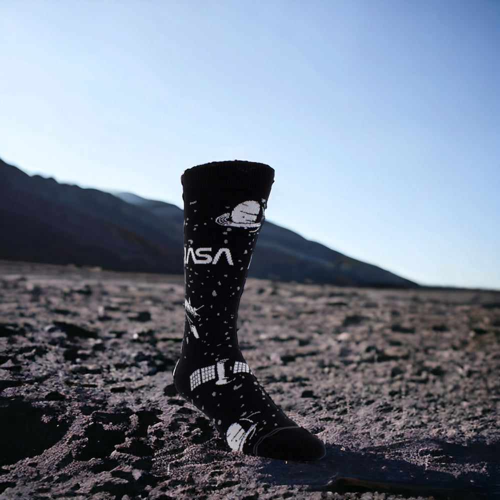 Mach einen kleinen Schritt für einen Mann, aber einen großen Schritt für deine Füße! Zieh die NASA-Socken an und starte modisch ins All! 51% Baumwolle, 32% Polyester, 16% Nylon, 1% Elastan. | Für Waschmaschine geeignet, bitte Warn- und Pflegehinweise beachten.