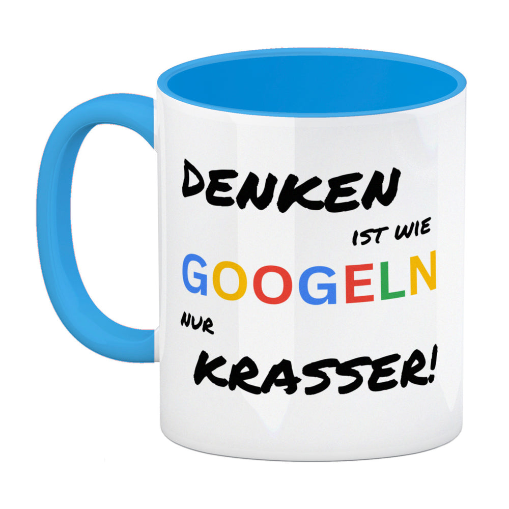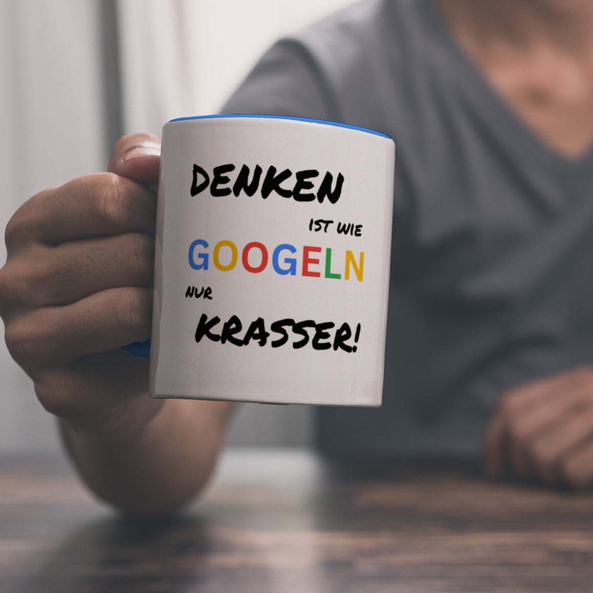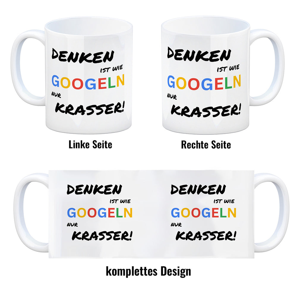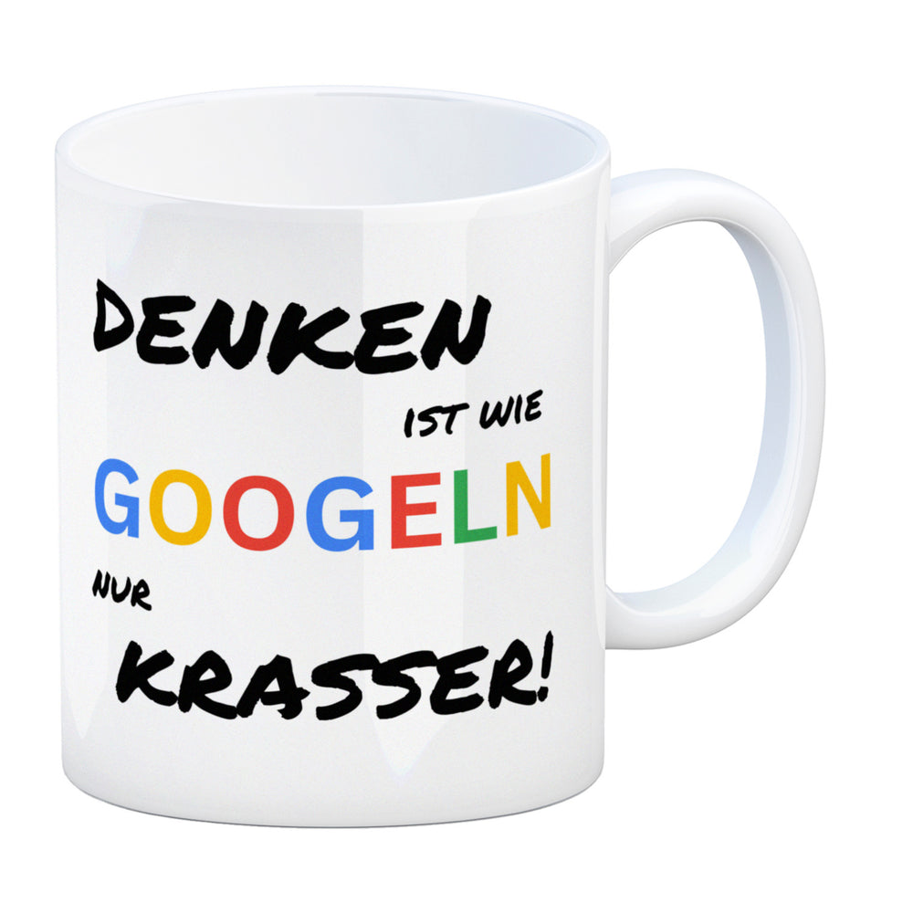 - Kaufen Sie jetzt die lustige Tasse mit dem Spruch: "Denken ist wie googeln nur krasser!" und schenken Sie Freude!