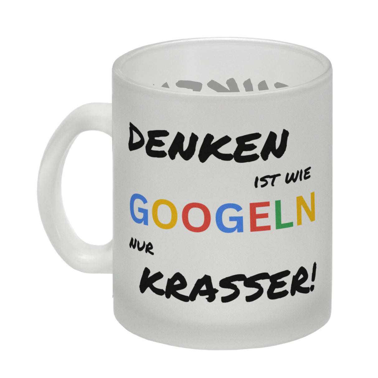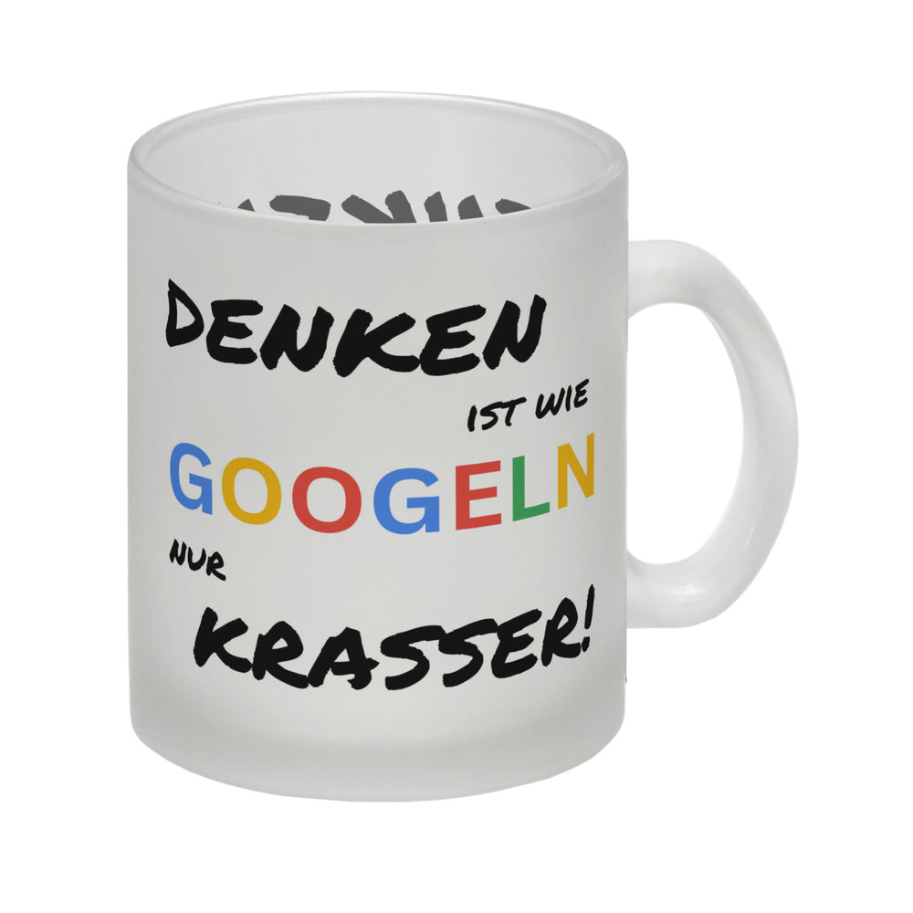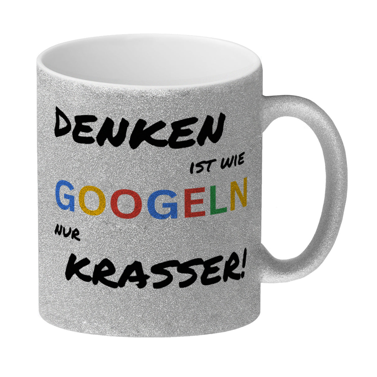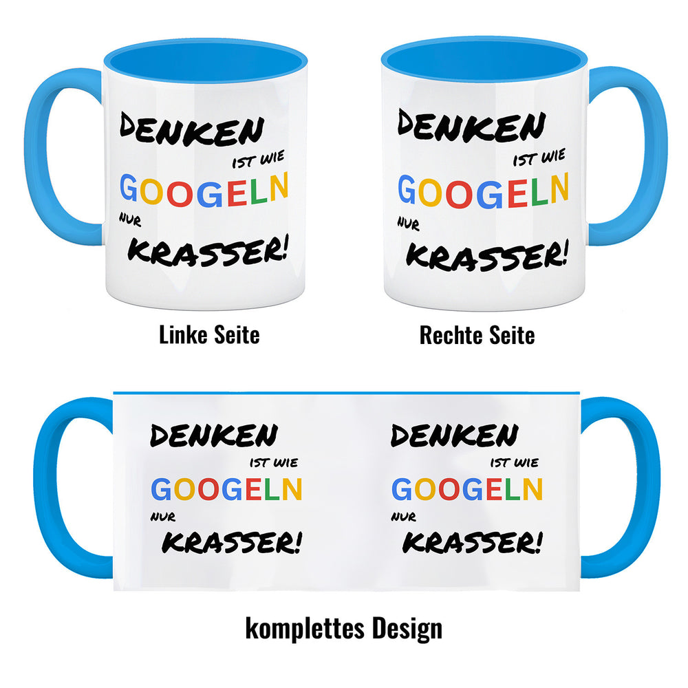 - Kaufen Sie jetzt die lustige Tasse mit dem Spruch: "Denken ist wie googeln nur krasser!" und schenken Sie Freude!