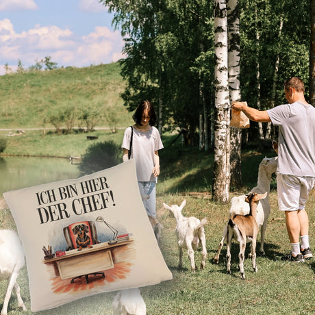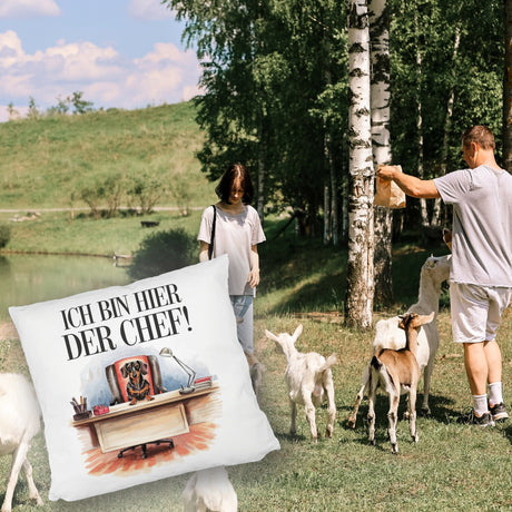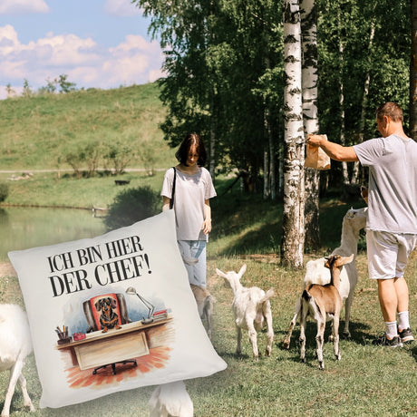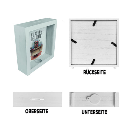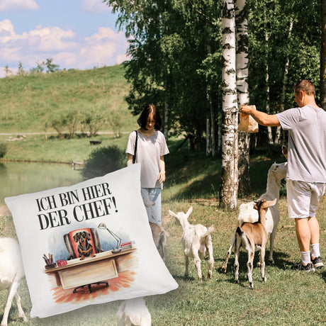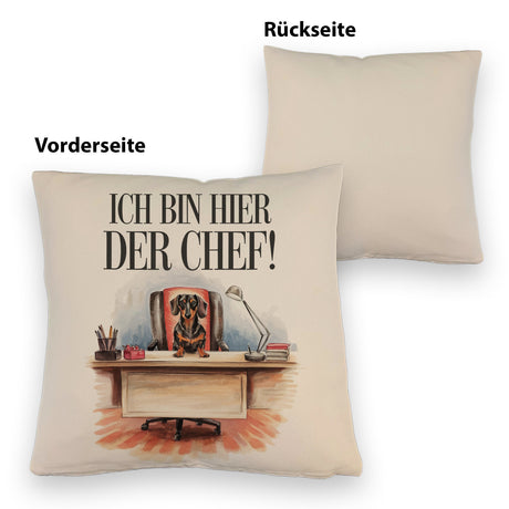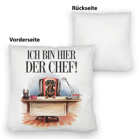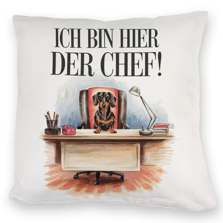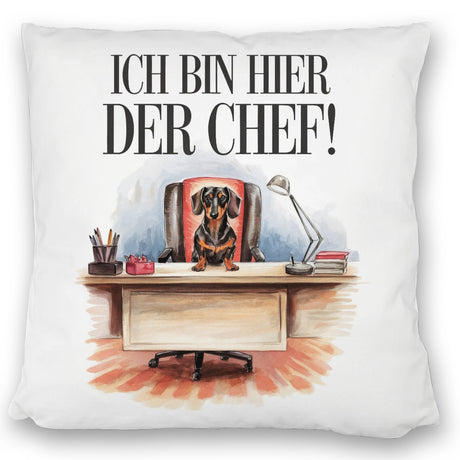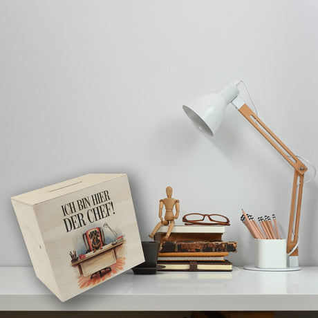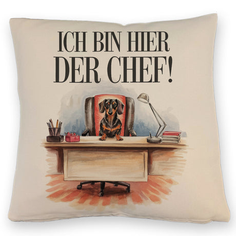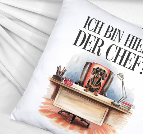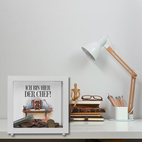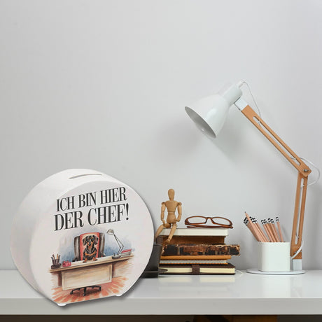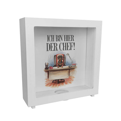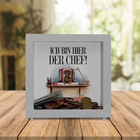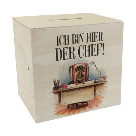 Hier ist der Dackel der Chef Spardose - Dackel auf Bürostuhl