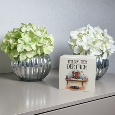 Ab €6,95Grundpreis /Nicht verfügbarAuf LagerIch bin hier der Chef Trinkglas mit Bambusdeckel Dackel auf Bürostuhl