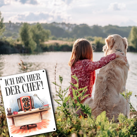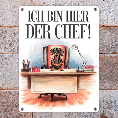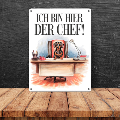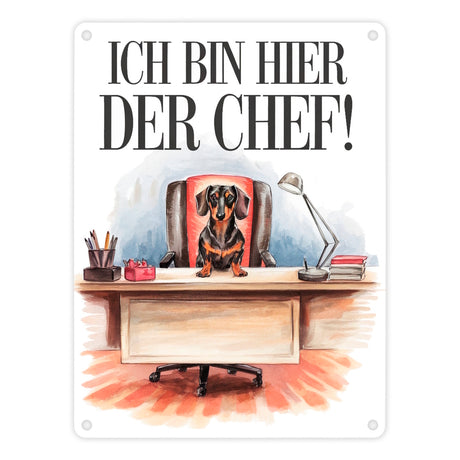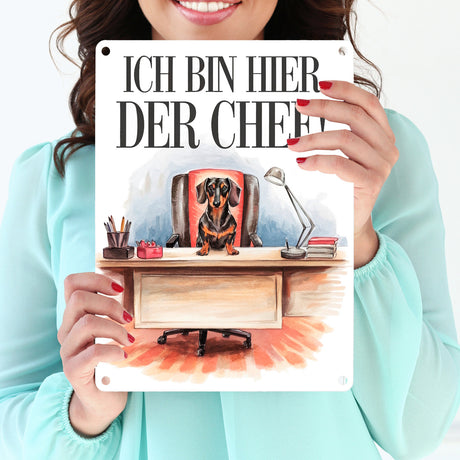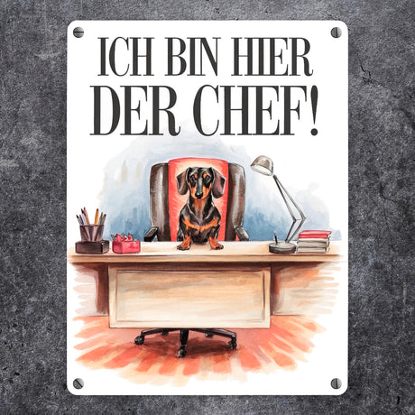 €9,95Grundpreis /Nicht verfügbarAuf LagerHier ist der Dackel der Chef Metallschild in 15x20 cm - Dackel auf Bürostuhl