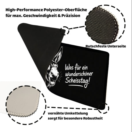 Ab €14,95Grundpreis /Nicht verfügbarAuf LagerLächelnder Esel Schreibtischunterlage 69x31cm XXL Mauspad Wunderschöner Scheisstag!