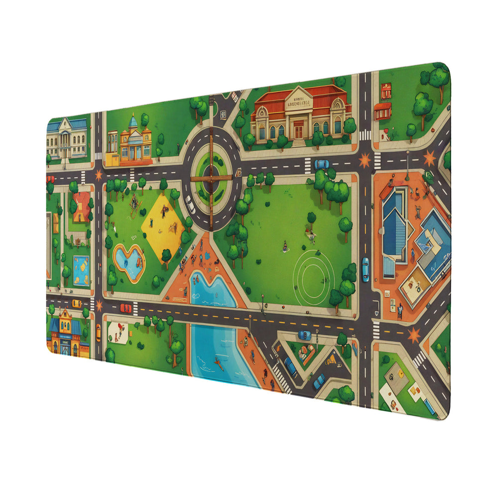 - Tauche ein in die bunte Welt der Stadt: Diese Schreibtischunterlage für Kinder zeigt eine farbenfrohe Straßenkarte. Gebäude wie Schulen, Krankenhäuser, Banken und Geschäfte sowie Straßenkreuzungen und Parks mit Spielplätzen machen das Design lebendig. Alles ist in einem praktischen Rastermuster angeordnet - ideal für kleine Stadtplaner!