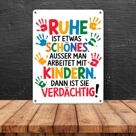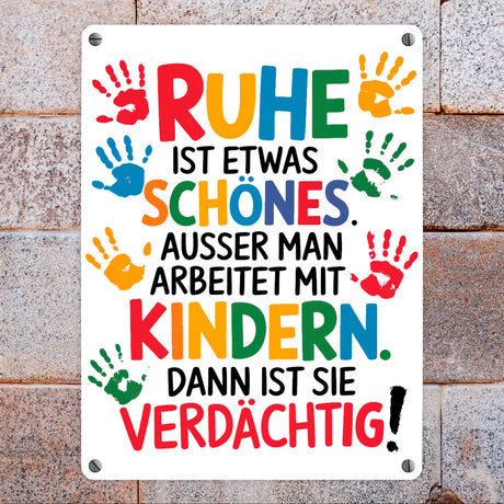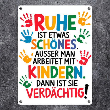 - Ruhe mit Kindern ist schön, aber verdächtig Metallschild in 15x20 cm für Erzieher Ab €7,90Grundpreis /Nicht verfügbarAuf Lager