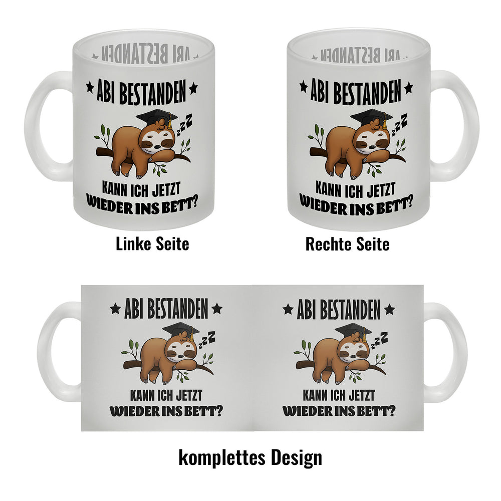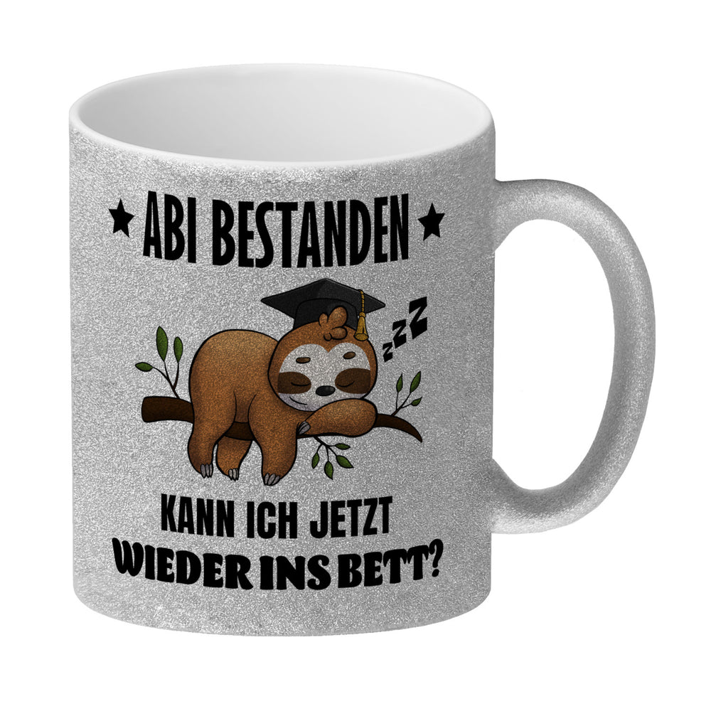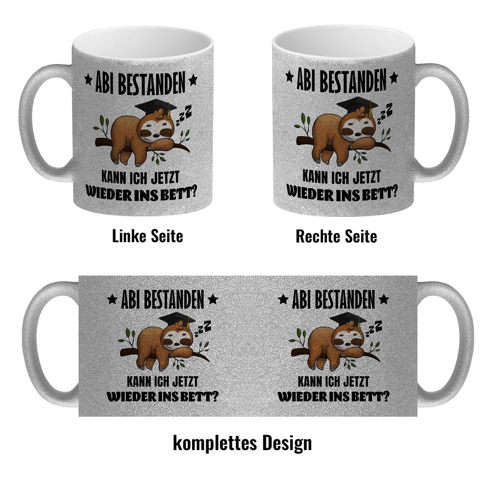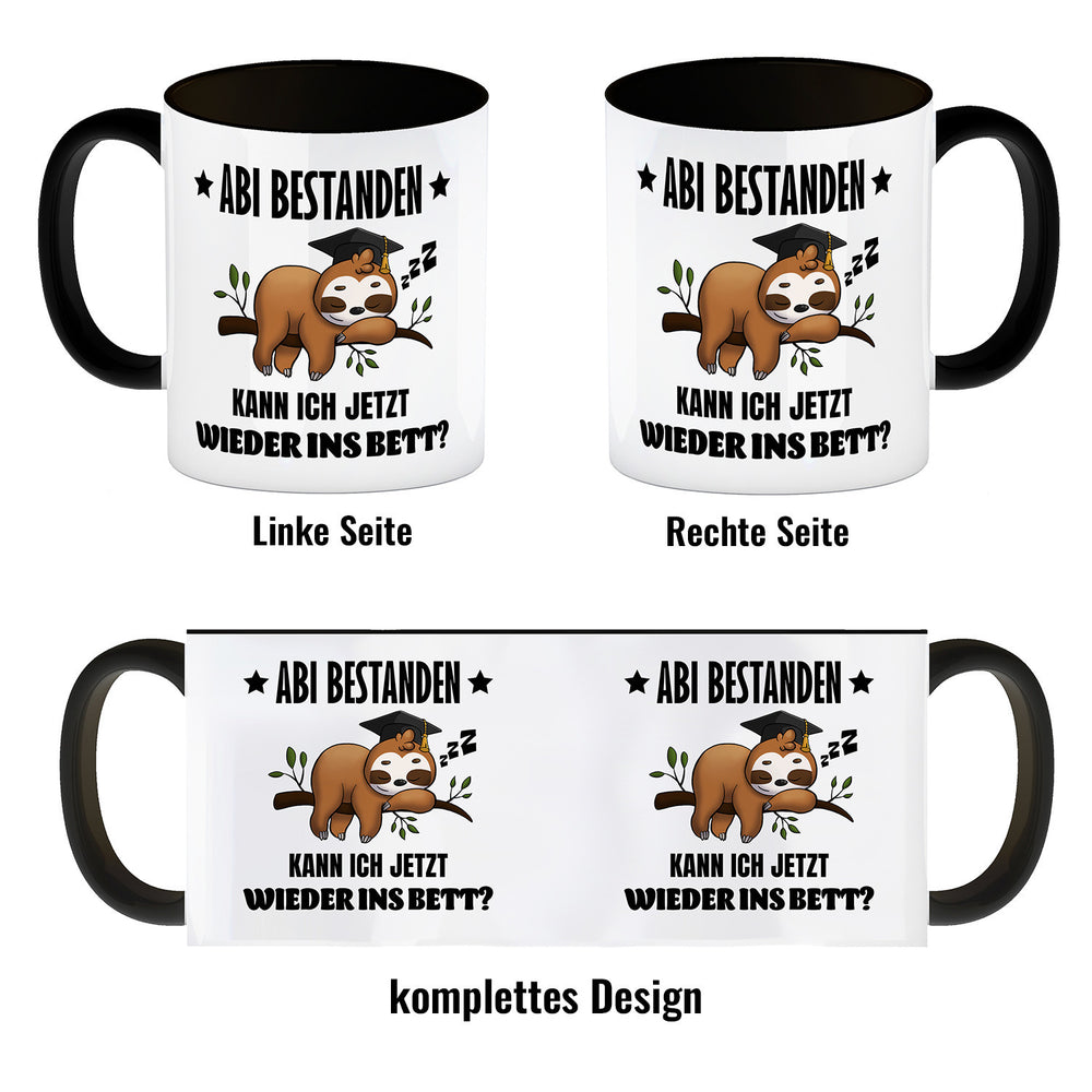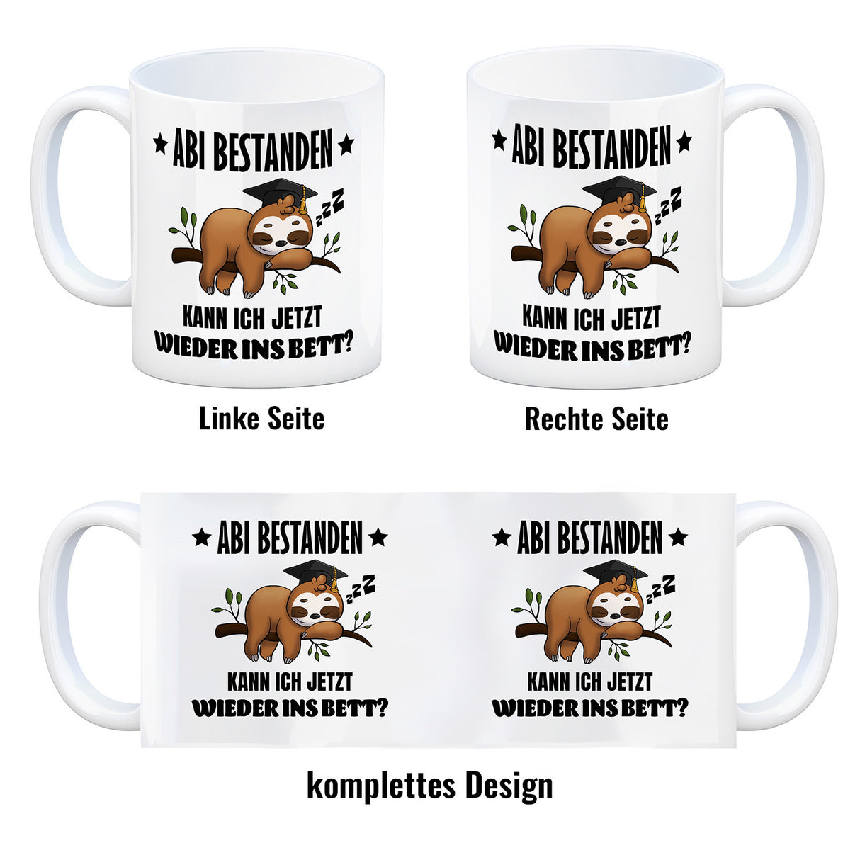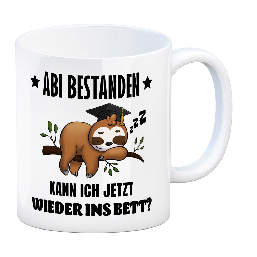 - 1x Faultier Abitur Kaffeebecher mit Spruch Abi geschafft zurück ins Bett in der gewählten Ausführung