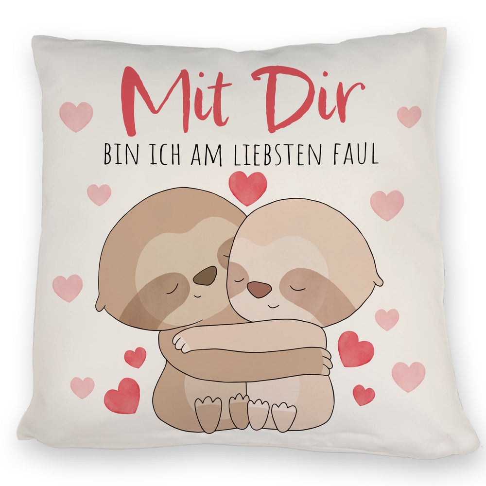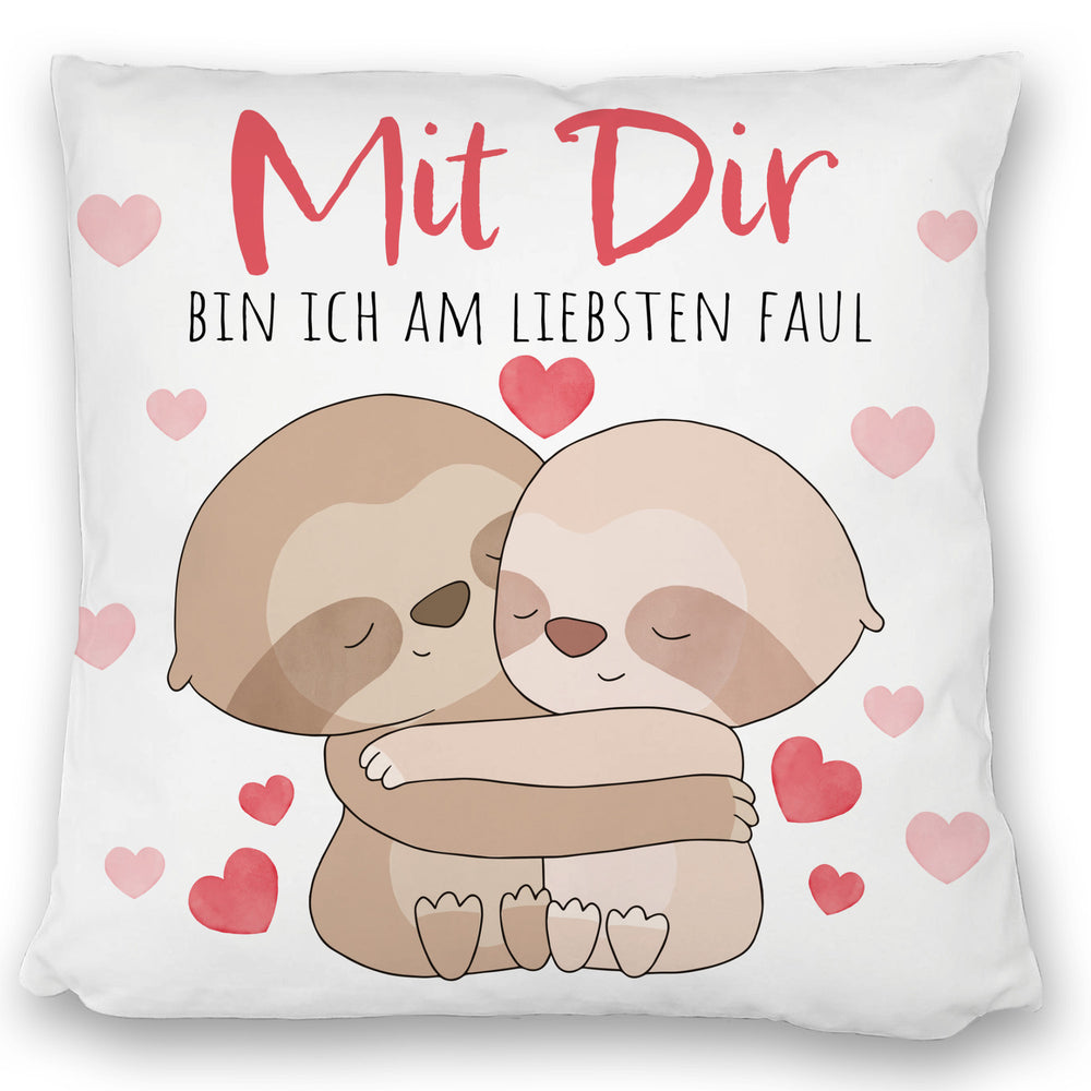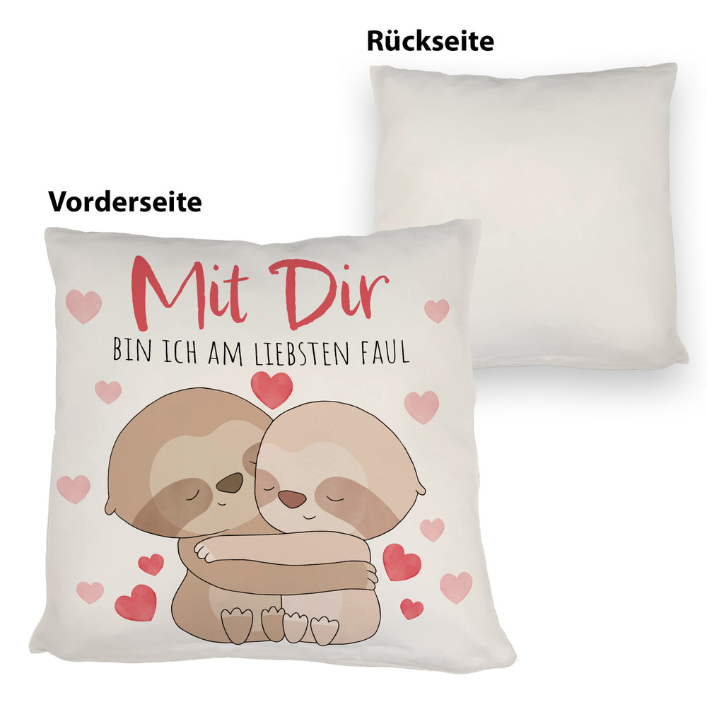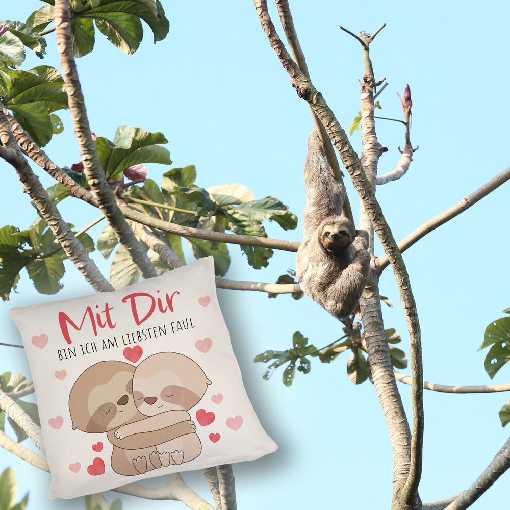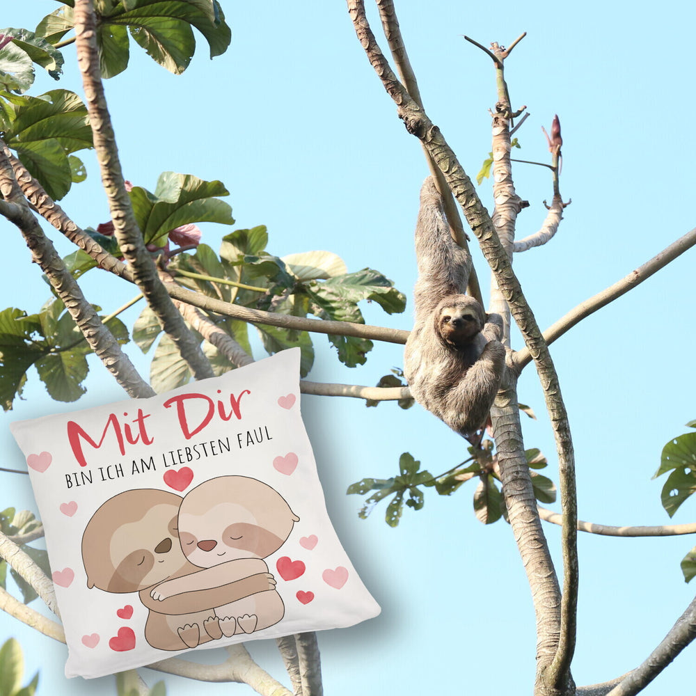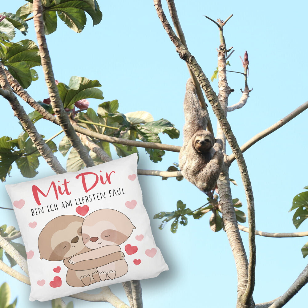 Faultier Paar Kissen mit Spruch Mit dir bin ich am liebsten faul