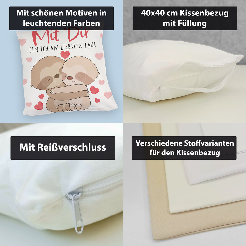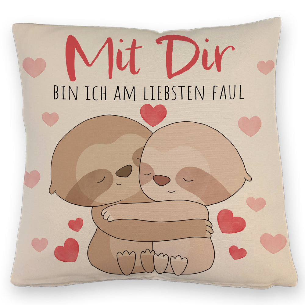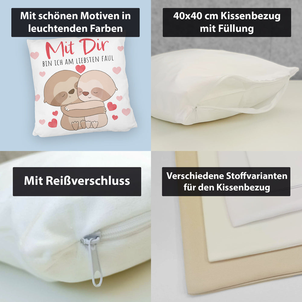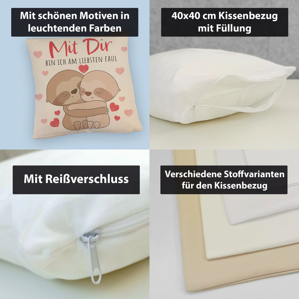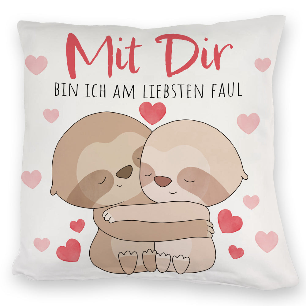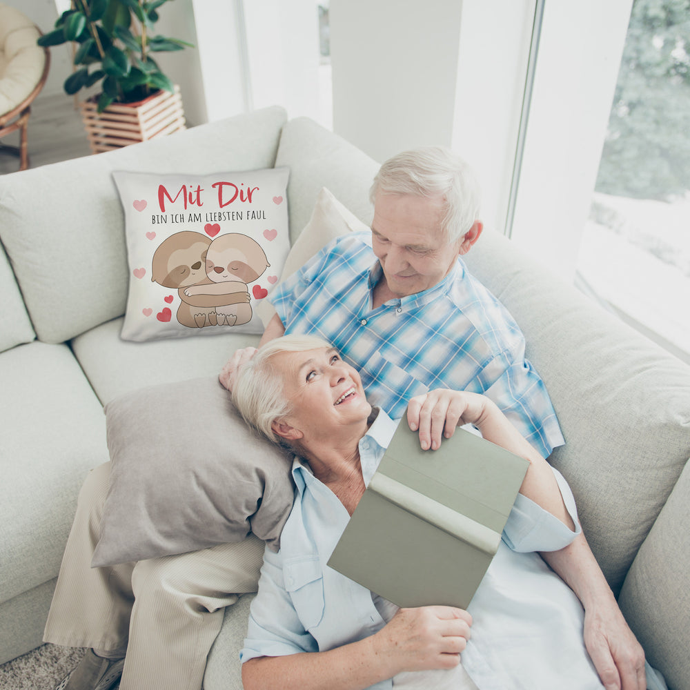 Faultier Paar Kissen mit Spruch Mit dir bin ich am liebsten faul