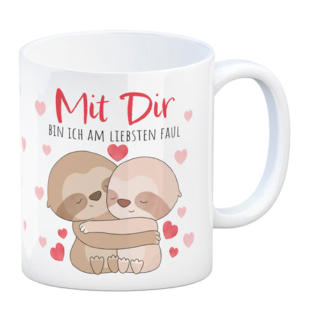 Faultier Paar Kaffeebecher mit Spruch Mit dir bin ich am liebsten faul