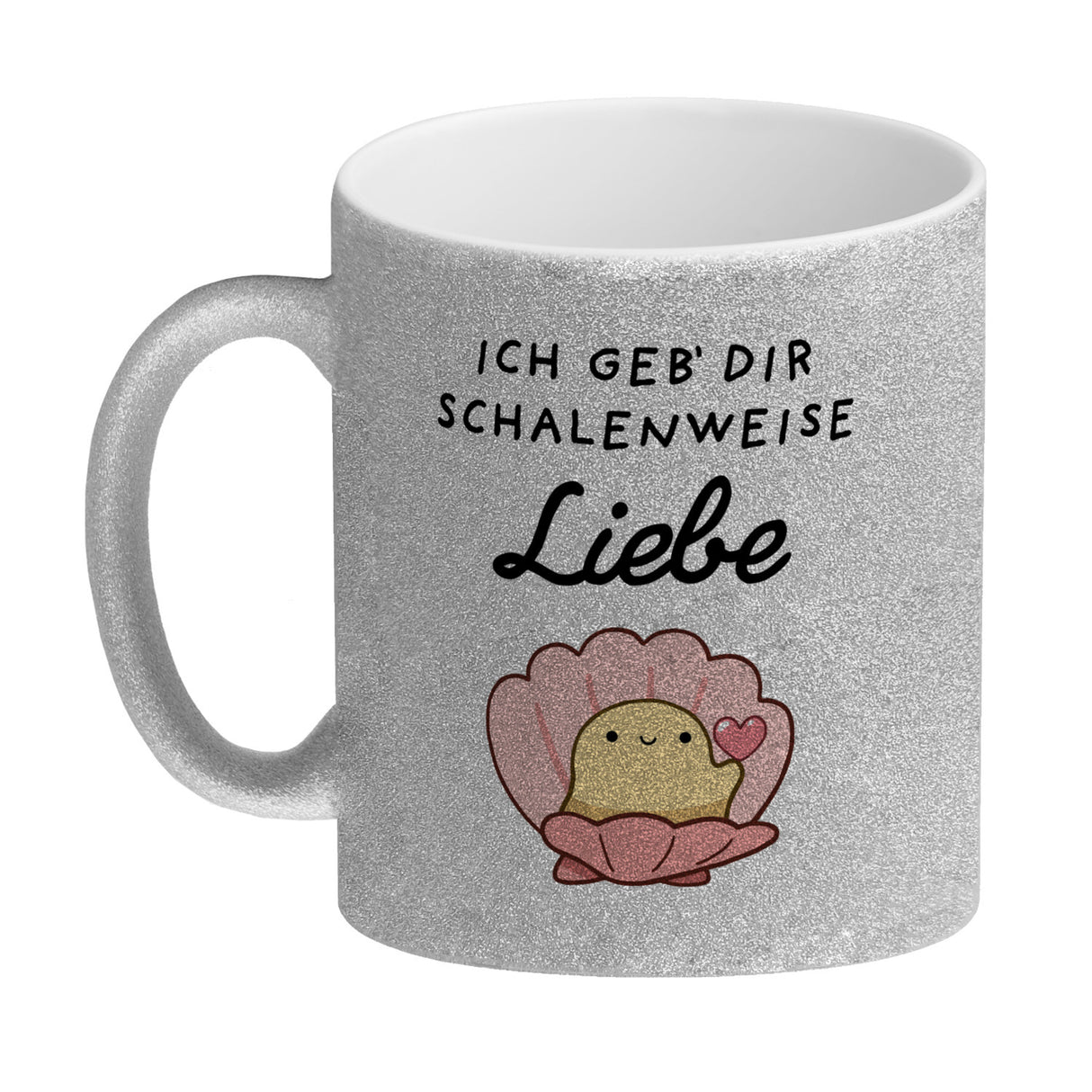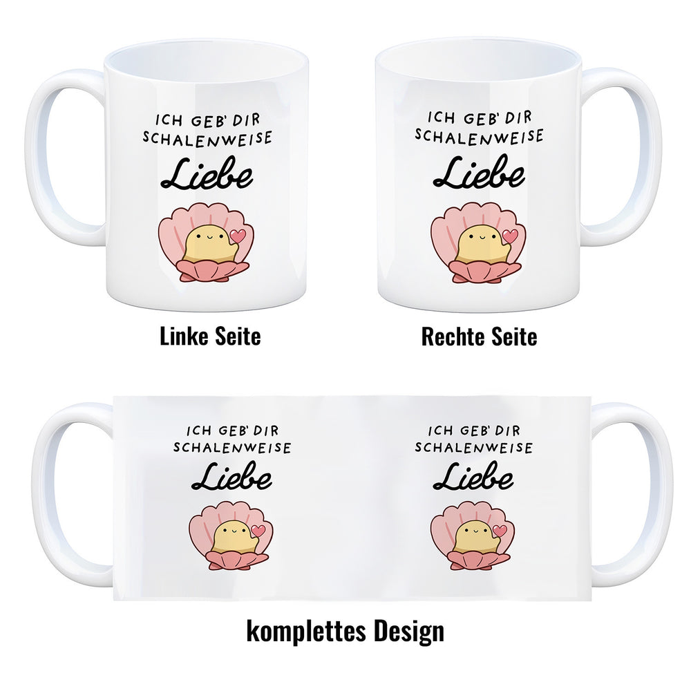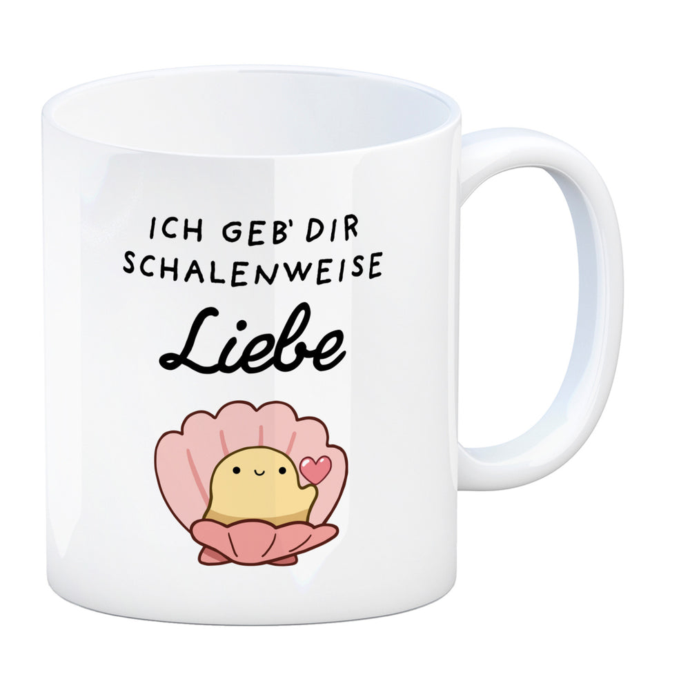 - 1x Jelly & Friends Muschel Kaffeebecher mit Spruch Ich geb‘ dir schalenweise Liebe in der gewählten Ausführung