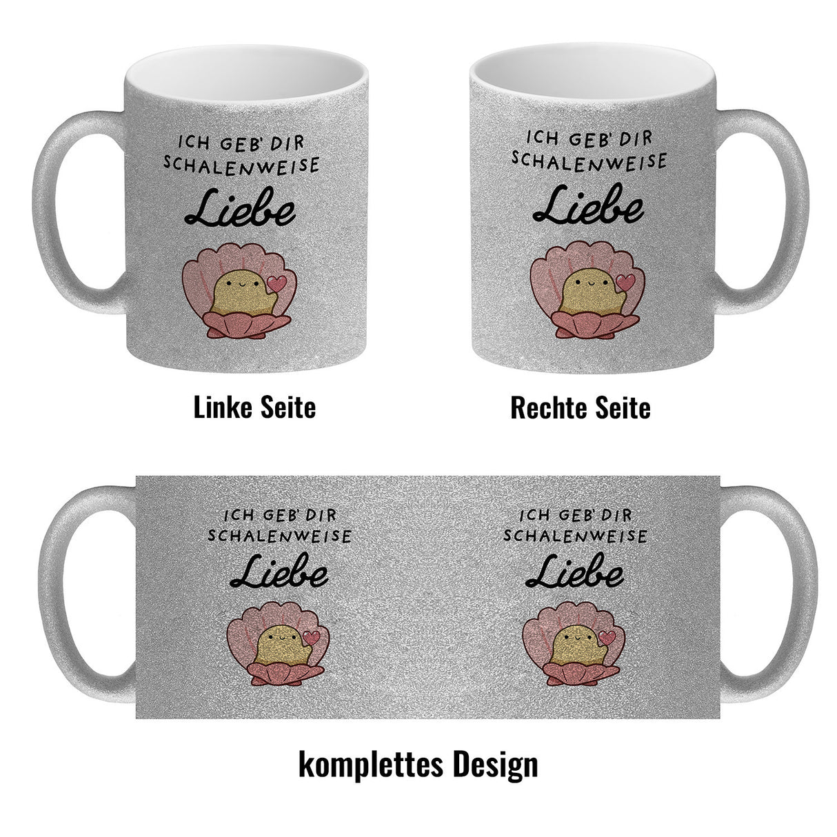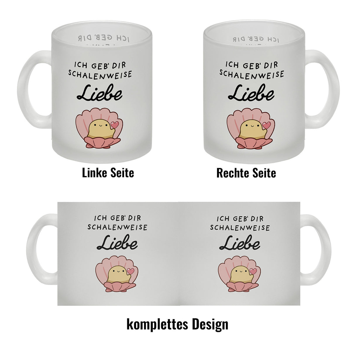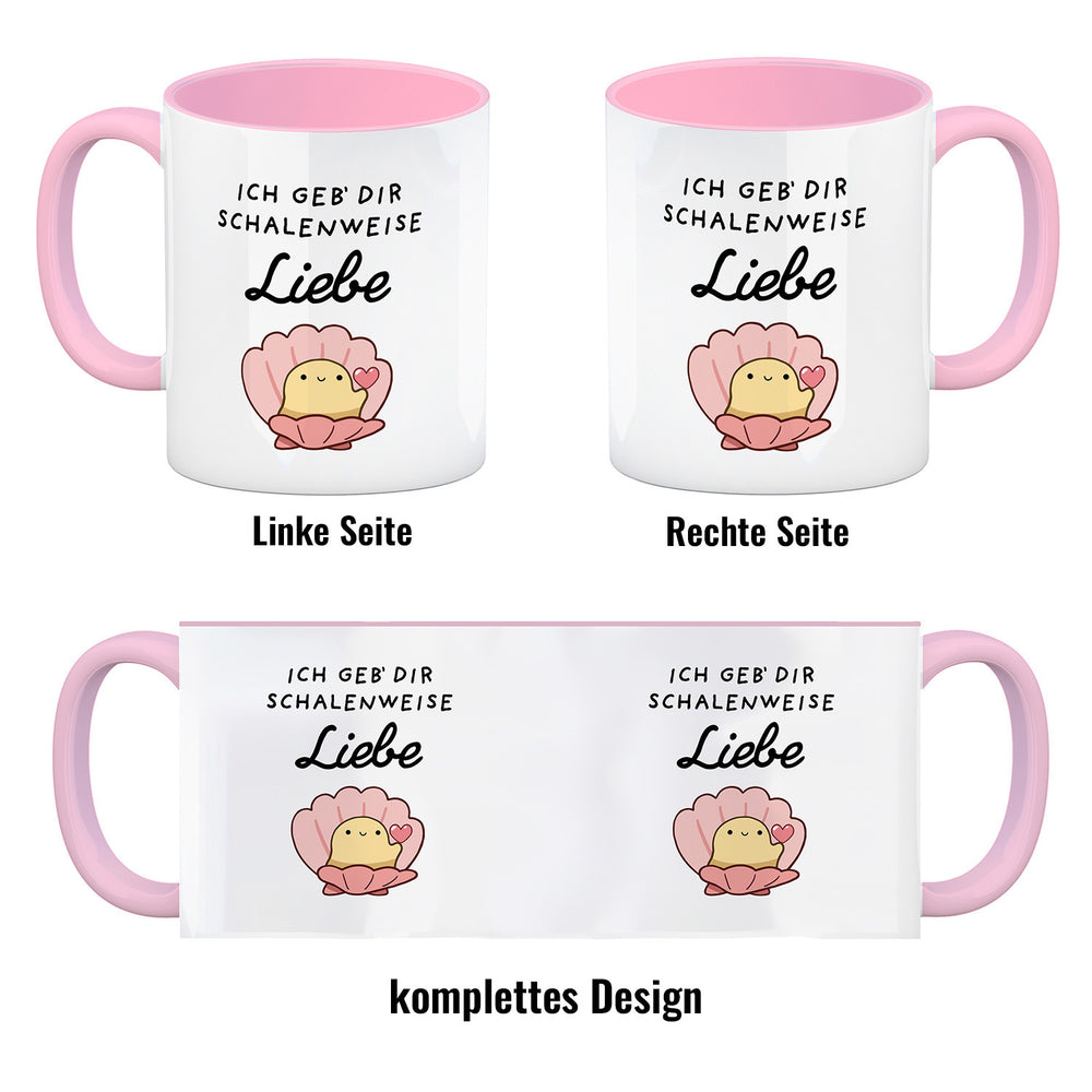 - 1x Jelly & Friends Muschel Kaffeebecher mit Spruch Ich geb‘ dir schalenweise Liebe in der gewählten Ausführung