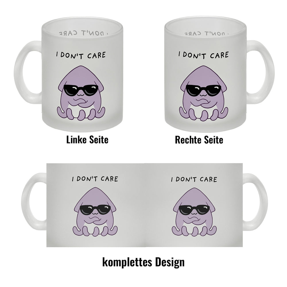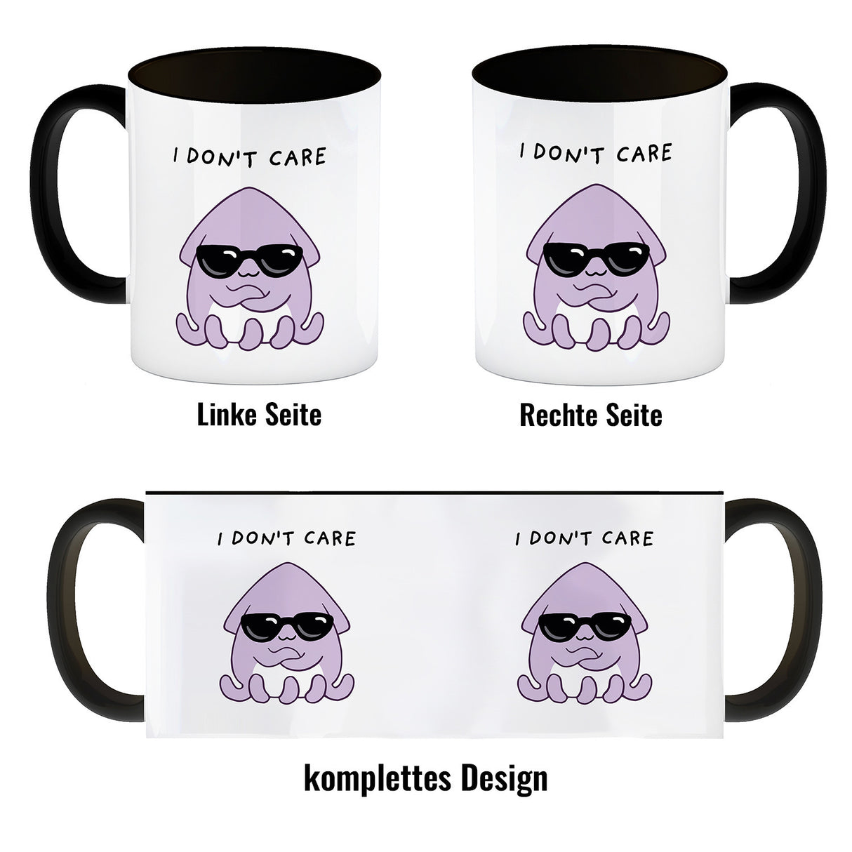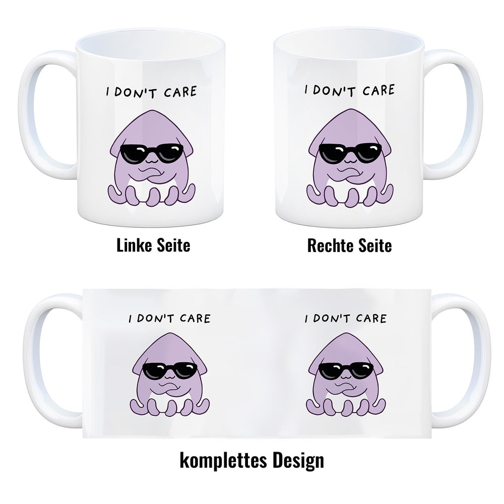 • 1x Jelly & Friends Tintenfisch Kaffeebecher mit Spruch I don‘t care in der gewählten Ausführung