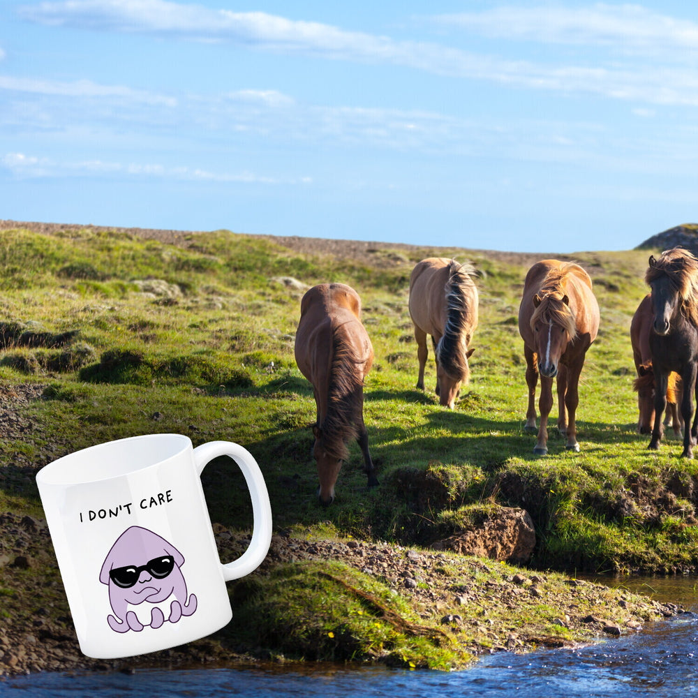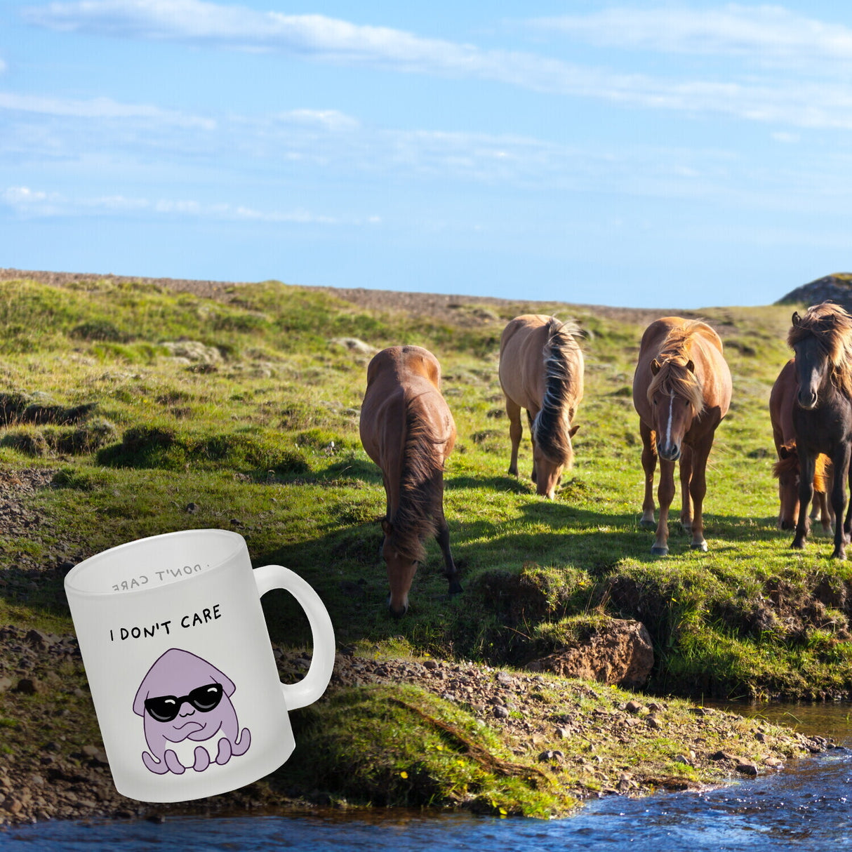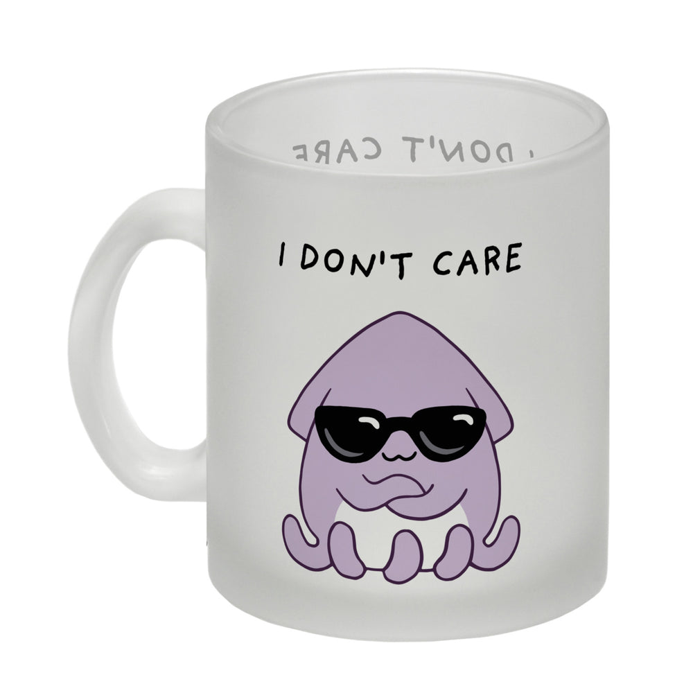 • 1x Jelly & Friends Tintenfisch Kaffeebecher mit Spruch I don‘t care in der gewählten Ausführung