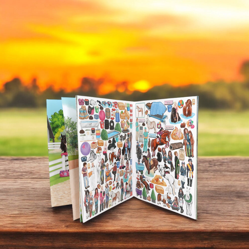 - Braucht dein Kind neuen Bastelspaß? Das Miss Melody Stickerworld Pferde Stickerbuch bietet 295 farbenfrohe Sticker für endlose kreative Abenteuer! Perfekt, um trübe Nachmittage zu verschönern und Kinder in fantastische Welten zu entführen. Ein absolutes Muss für kleine Pferdefans und DIY-Begeisterte!