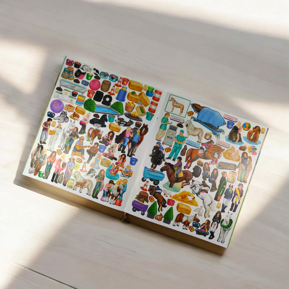 - Unser kinderfreundliches Stickerbuch enthält 24 fantasievoll gestaltete Seiten, die mit deinen Lieblingsstickern zum Leben erweckt werden können. Mit 295 bunten Pferdestickern kannst du zauberhafte Szenen gestalten und spannende Geschichten erzählen. Ideal für kleine, kreative Bastlerinnen und Bastler!
