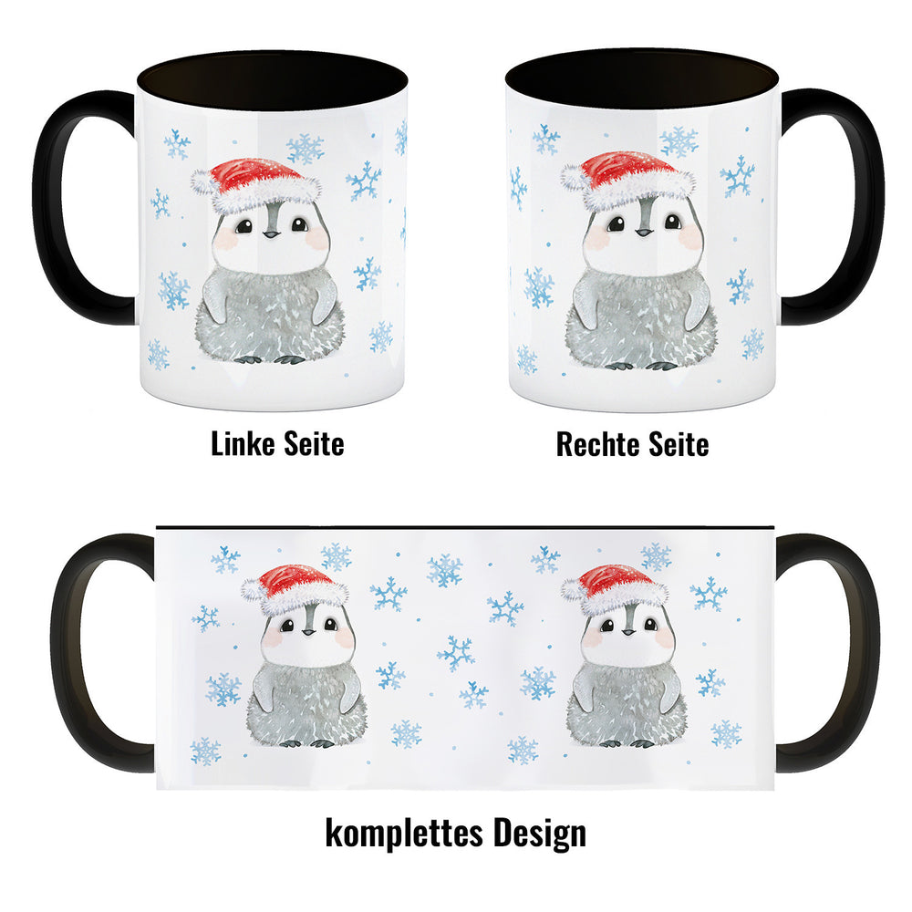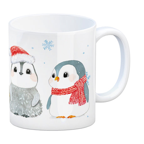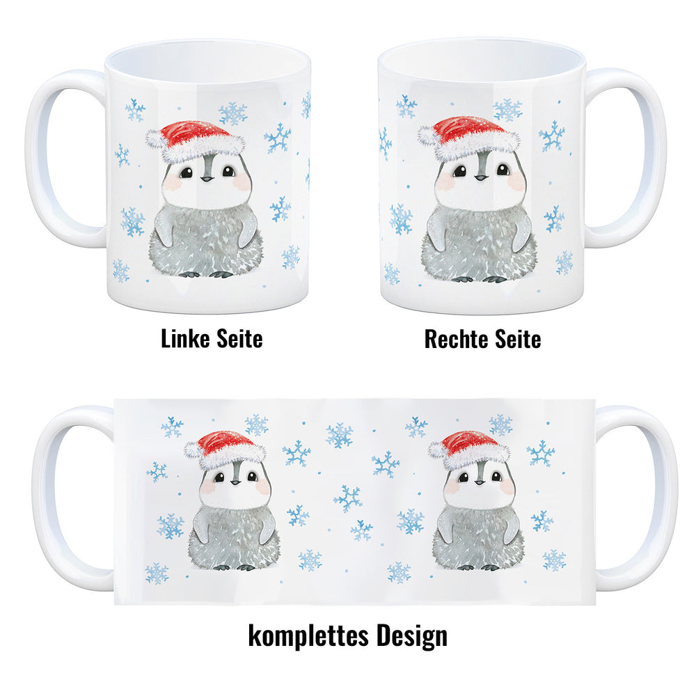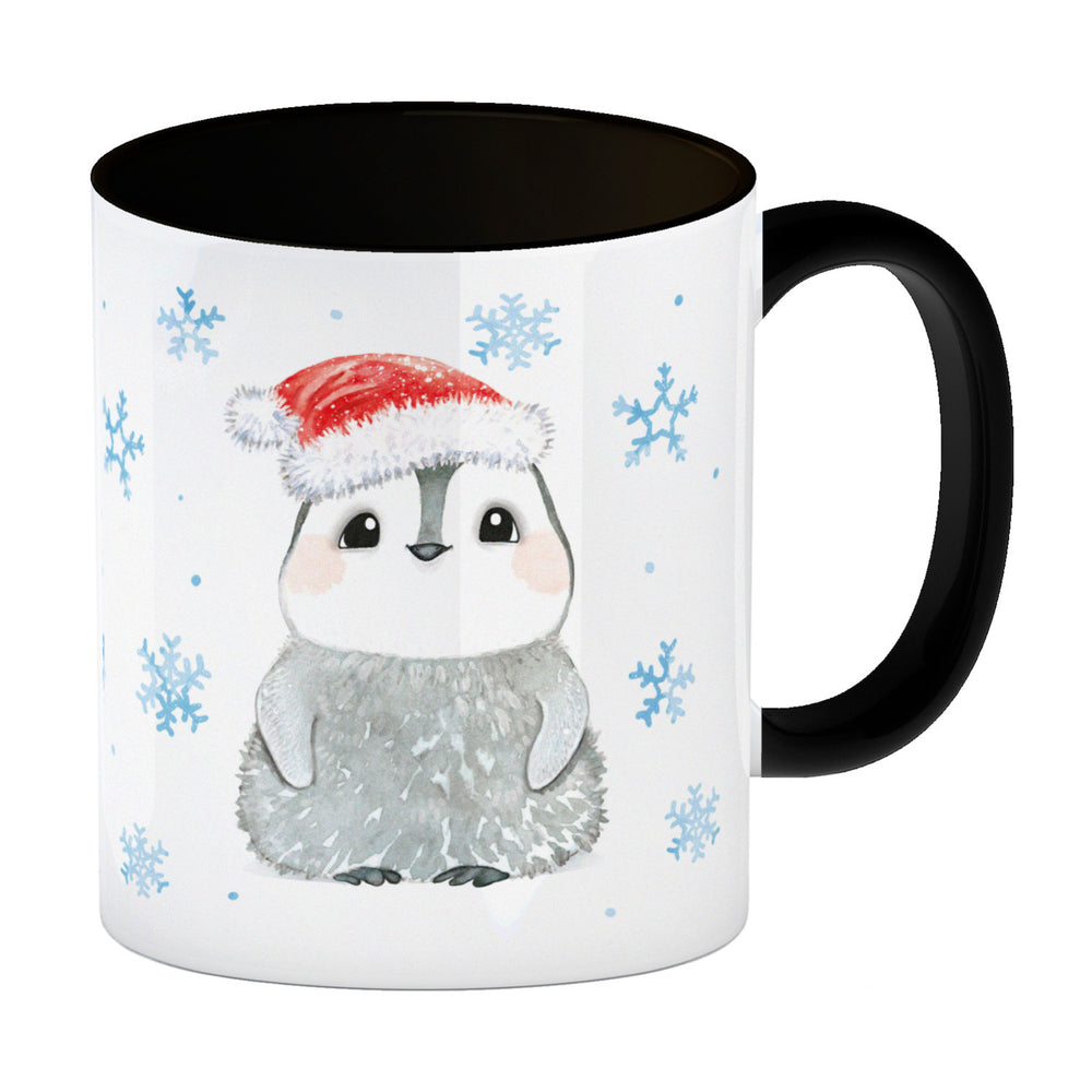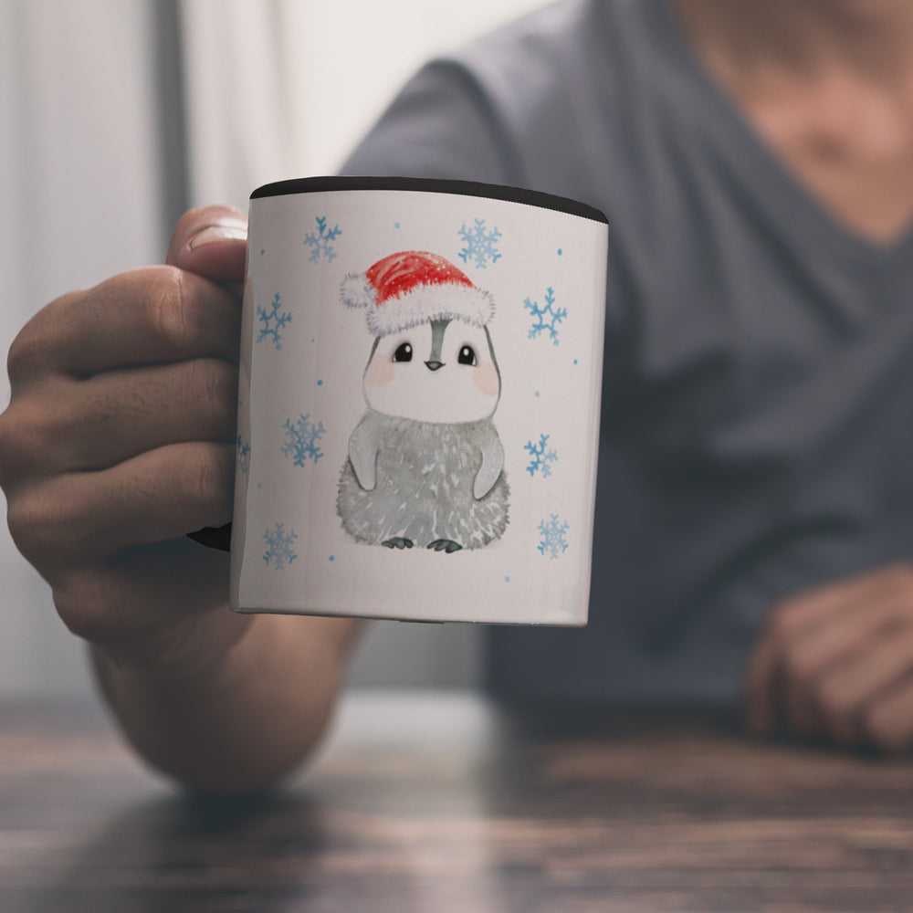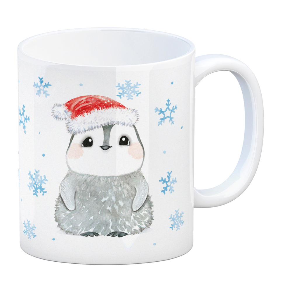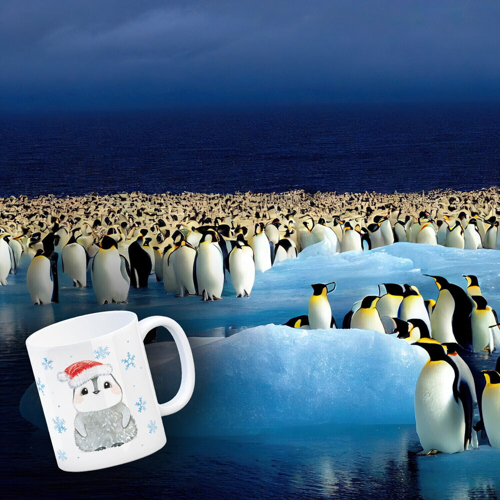 - Der niedliche Kaffeebecher mit Pinguin Motiv ist ein echter Hingucker. Ein süßer Pinguin mit Weihnachtsmütze ziert die Tasse, während Schneeflocken im Hintergrund tanzen. Diese Tasse benötigt man, um seinen Morgenkaffee oder die heiße Schokolade am Nachmittag noch besser zu genießen.