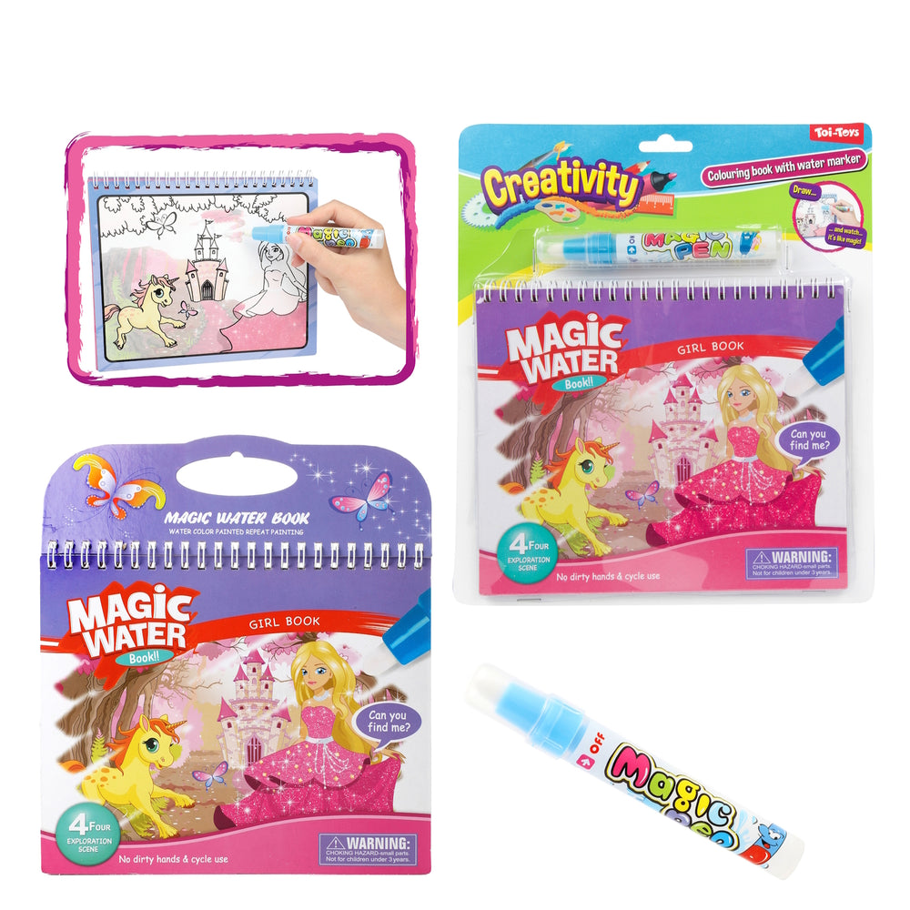 - Das Design ist einfach märchenhaft! Der Wasserstift verwandelt sich in einen Zauberstab, der die vier Entdeckerszenen mit bunten Wundern füllt. Wie durch Magie erscheinen prächtige Farben auf den Seiten – ein Kinderspiel! Und wenn das Meisterwerk vollendet und getrocknet ist, verschwindet die Farbe wie durch Zauberei und bereit fürs nächste Kunstwerk.