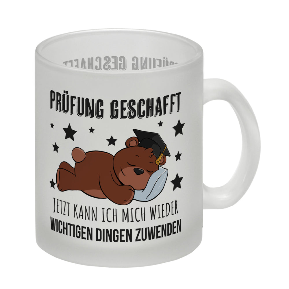 - Stürze dich mit diesem "Prüfung geschafft Kaffeebecher" ins wohlverdiente Chill-Universum! Nach endlosen Nächten des Büffelns zeigt der relaxte Abschlussbär mit Doktorhut, dass jetzt die Zeit des genüsslichen Entspannens und hemmungslosen Essens angebrochen ist.