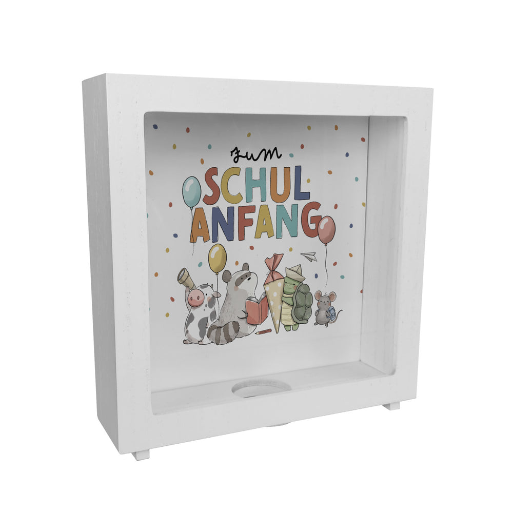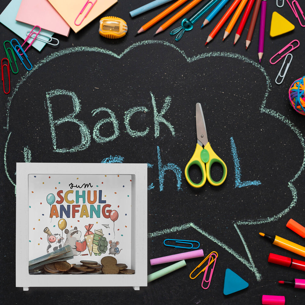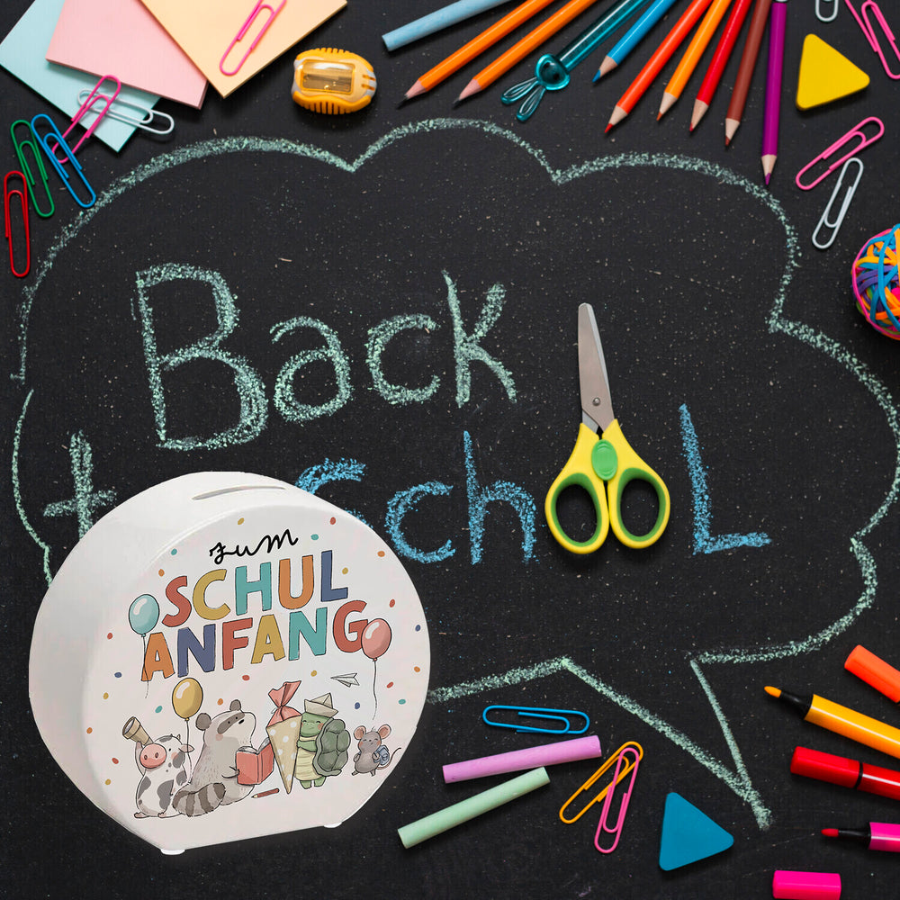 Tiere zur Einschulung Spardose mit Spruch Zum Schulanfang