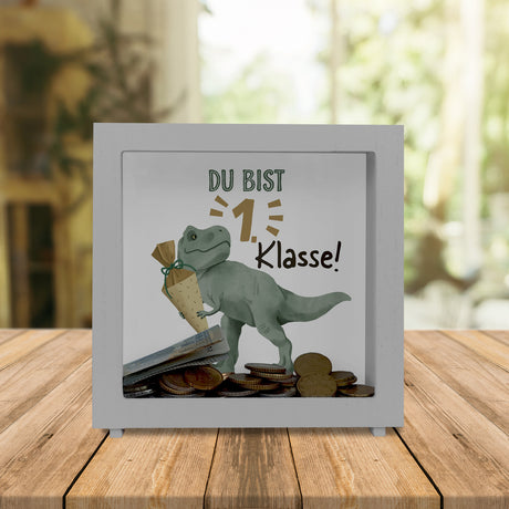 Ab €12,95Grundpreis /Nicht verfügbarAuf LagerDino mit Schultüte Spardose mit Spruch Du bist 1. Klasse!