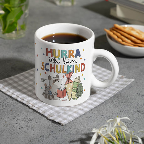 Ab €12,95Grundpreis /Nicht verfügbarAuf LagerTiere zur Einschulung Kaffeebecher mit Spruch Hurra ich bin Schulkind