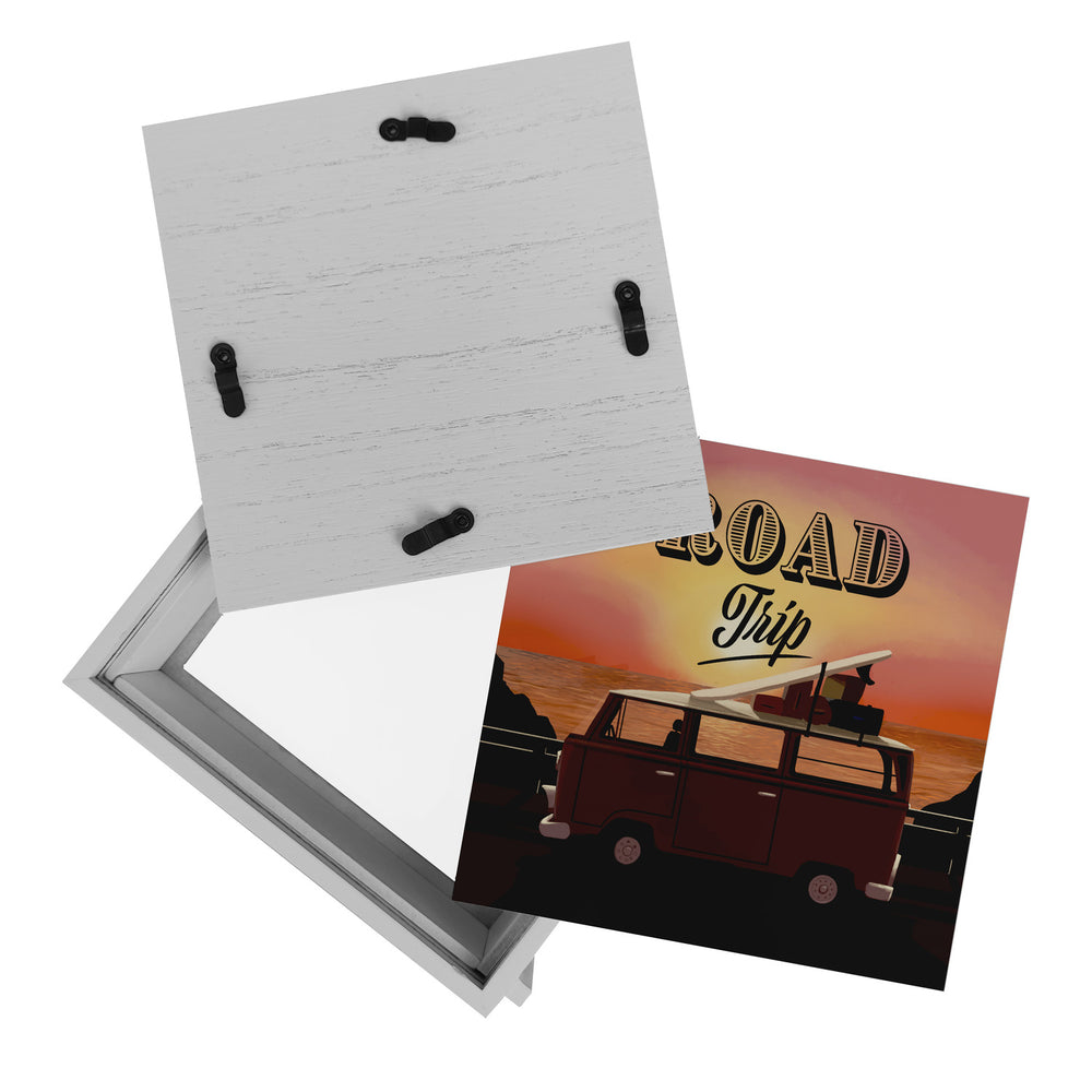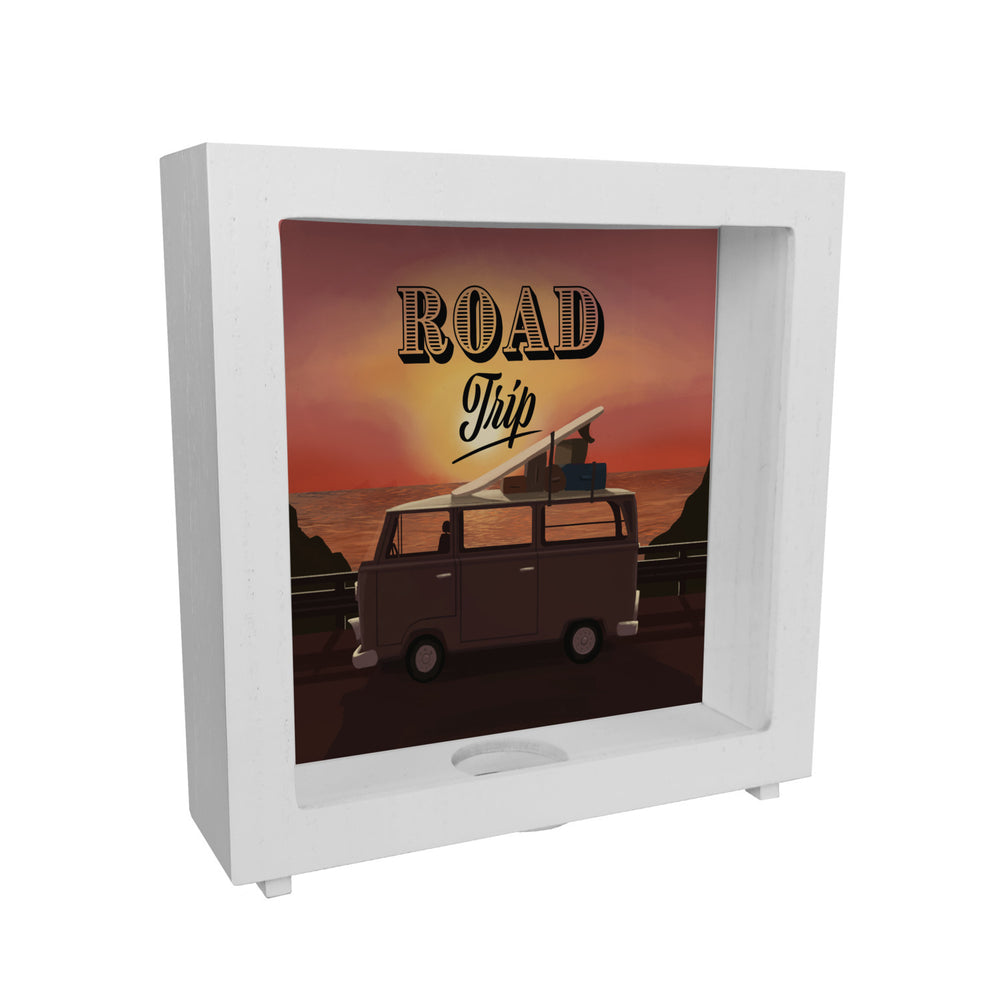- 1x Spardose für einen Road Trip mit Retro Campingbus und Sonnenuntergang als Motiv in der gewählten Ausführung