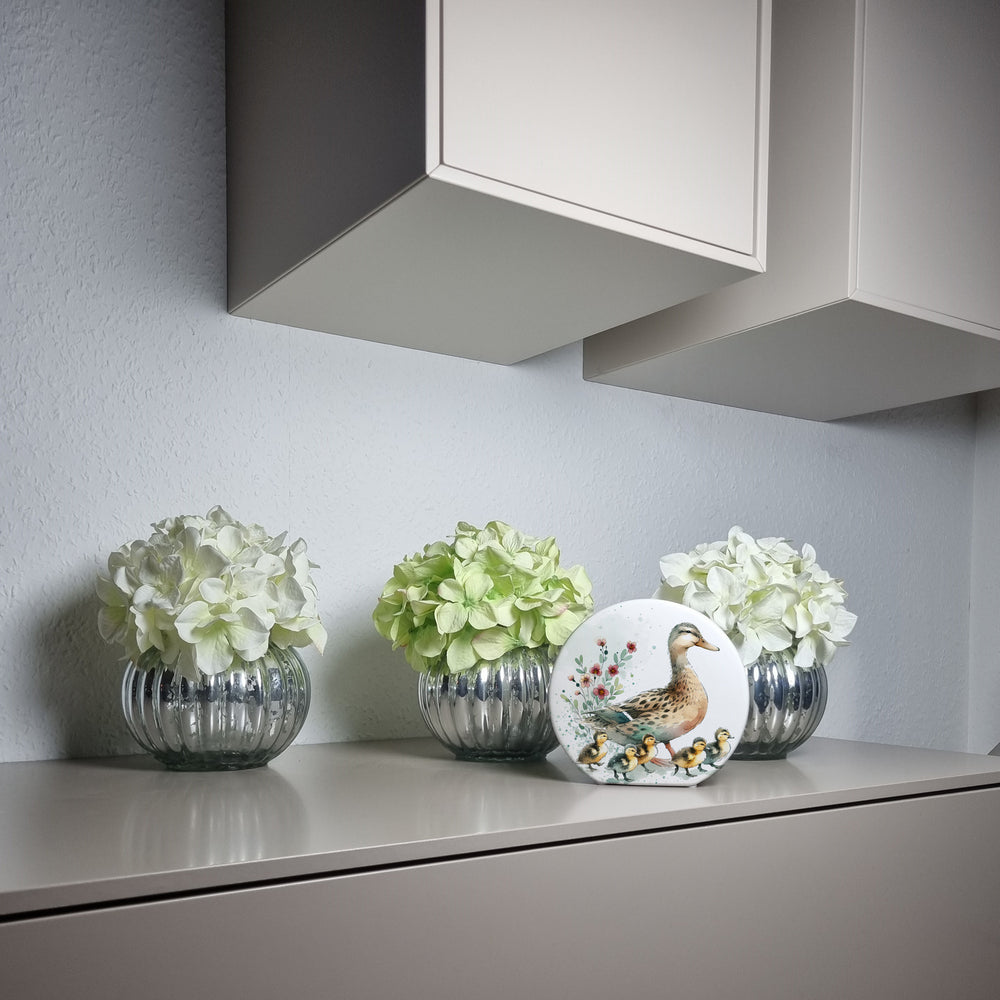 Warum nur Geld sparen, wenn man dabei auch noch den Anblick einer fröhlichen Vogel-Familie genießen kann? Ob als Geschenk oder für dich selbst, diese Ente mit Küken Spardose bringt Spaß und Freude in deinen Alltag. Lass die kleinen gelben Tiere über dein Erspartes wachen und entdeck die süßeste Art, es zu schützen! Unsere Ente mit Küken Spardose begeistert nicht nur durch ihr liebevolles Design, sondern auch durch ihre Variantenvielfalt: Erhältlich als schlichte Holzspardose, in hochwertiger ovaler Keramik-Version oder in der exklusiven Rahmen-Variante aus Holz mit Sichtfenster – ideal für Geldgeschenke! Jede Version wird mit größter Sorgfalt in unserer Spardosen-Manufaktur in Deutschland bedruckt. Dieses bezaubernde Accessoire, mit Mama Ente und ihren winzigen gelben Küken auf einer grünen Wiese, verleiht jedem Raum ein warmes und einladendes Gefühl. Perfekt für Kinderzimmer, Büros oder Badezimmervitrine – ein Hauch von Natur und Bauernhof-Charme für dein Zuhause! Kinder lieben es, ihre Ersparnisse in dieser niedlichen Gesellschaft zu hüten, während Eltern spielerisch das Sparen beibringen können. Auch Erwachsene schätzen die Spardose als humorvolles Deko-Objekt und Gesprächsstarter.Warum also nicht gleich zugreifen? Diese Ente mit Küken Spardose ist das perfekte Geschenk für alle Tier- und Naturfreunde. Praktisch, charmant und unwiderstehlich – ein Volltreffer, der Freude und Funktionalität kombiniert!