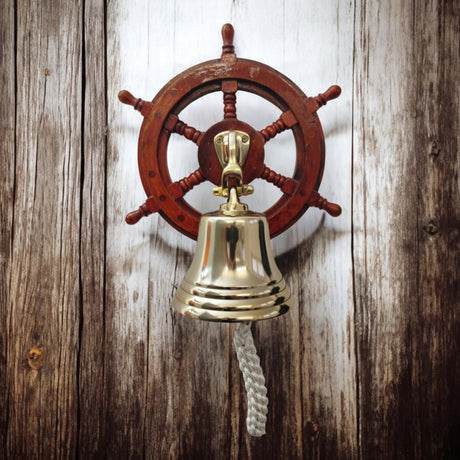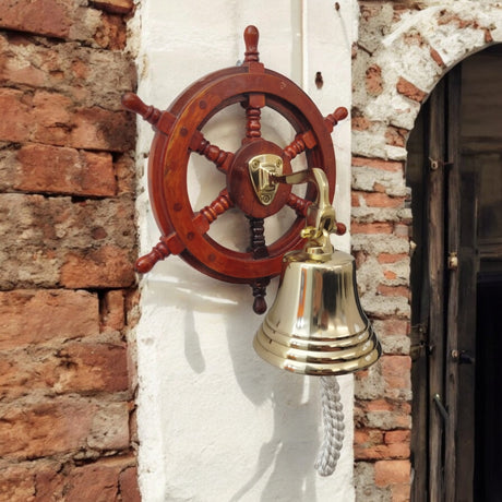 €18,95Grundpreis /Nicht verfügbar Steuerrad Glocke in Messingoptik - Maritime Schiffsglocken Deko