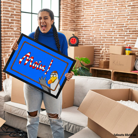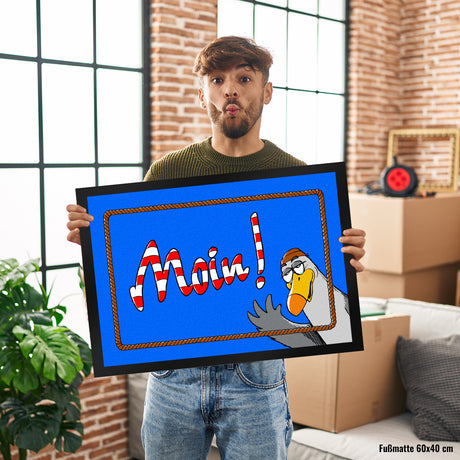 Moin Leuchtturm Fußmatte mit Möwe Nordsee Geschenk für Seefahrer Schiffstau