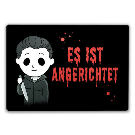 Serienkiller mit Messer Schneidebrett aus Glas mit Spruch Es ist angerichtet