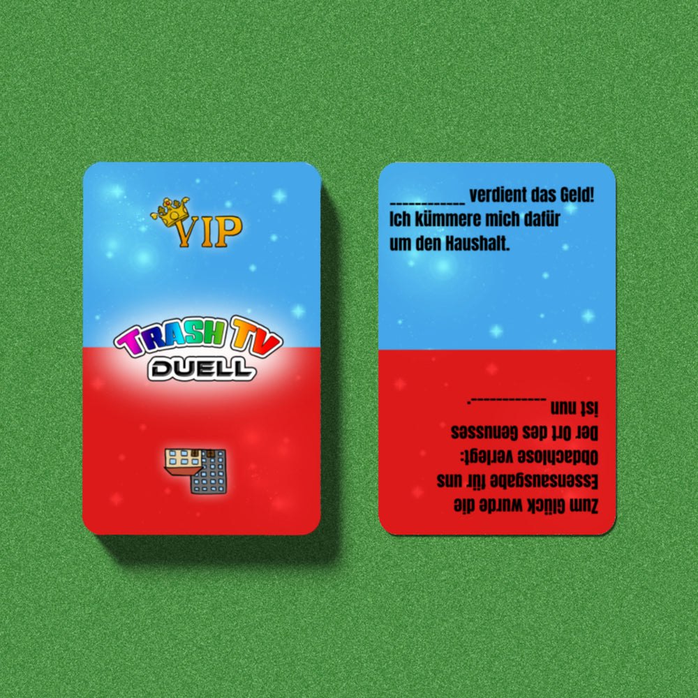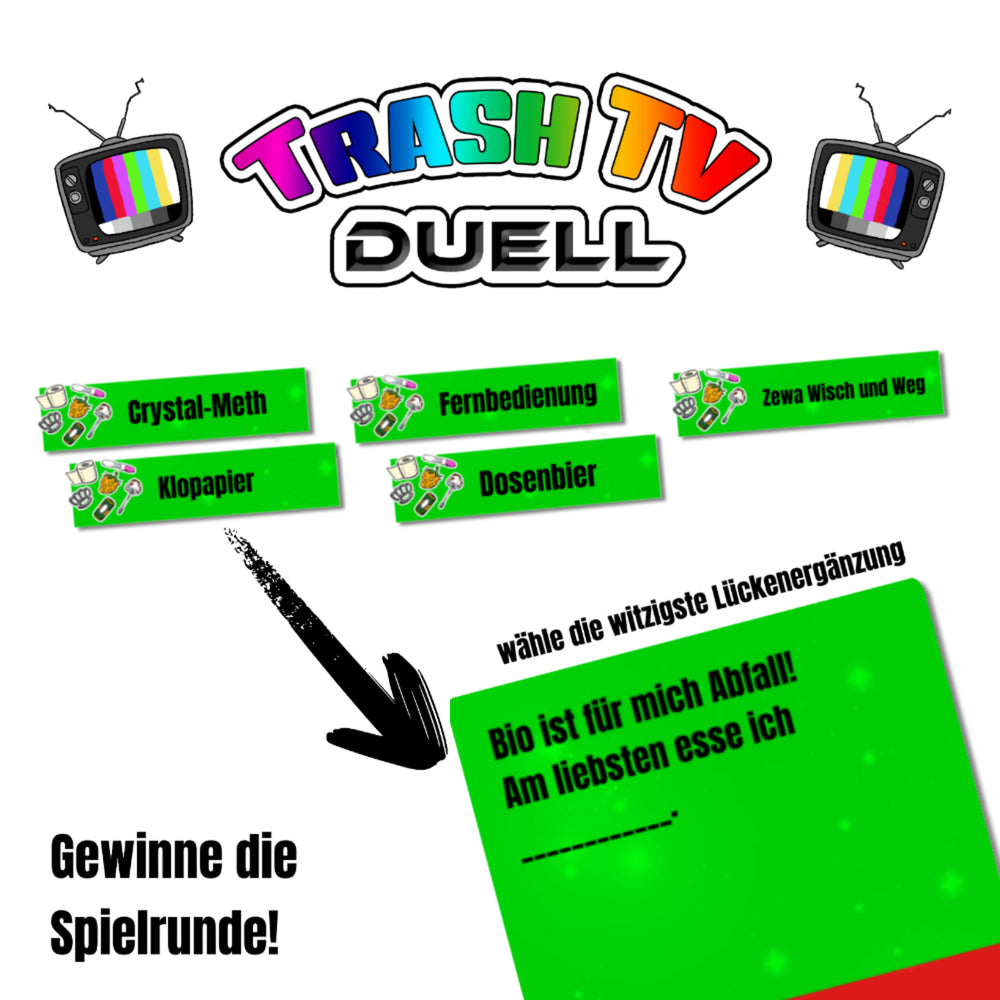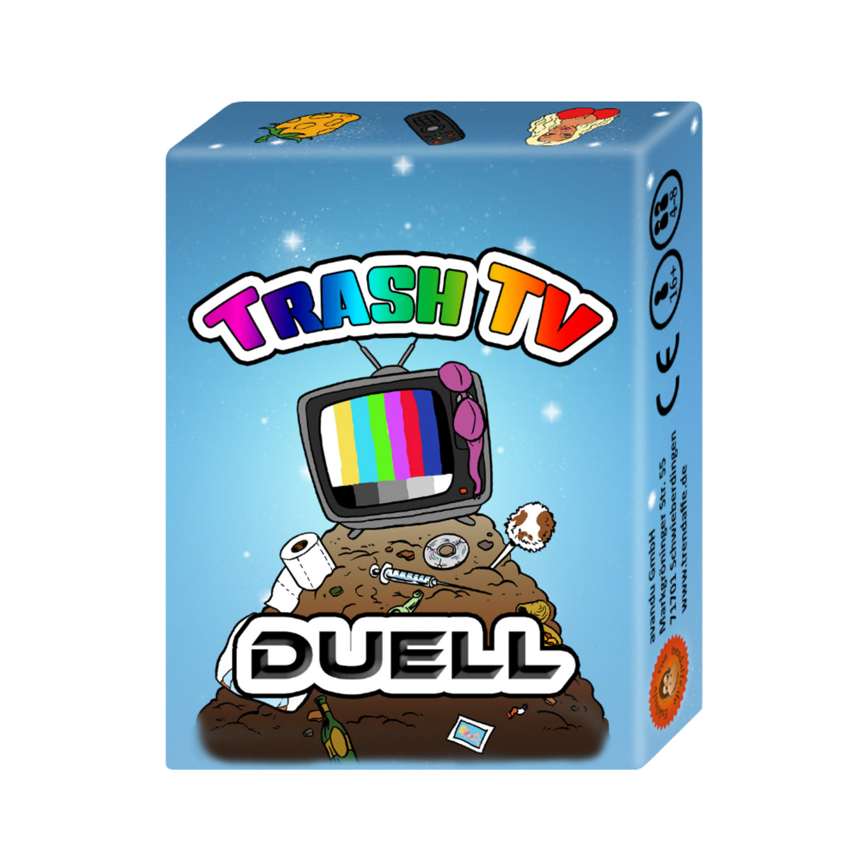 - Lieferumfang: 1x Trash-TV Duell Gesellschaftsspiel mit insgesamt 110 Spielkarten