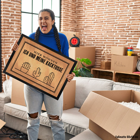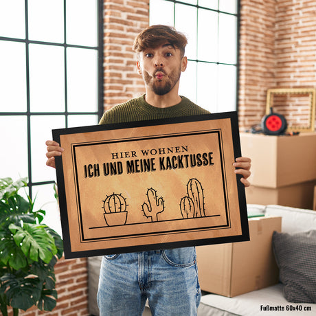 Ab €12,95Grundpreis /Nicht verfügbarAuf LagerHier wohnen ich und meine Kacktusse Fußmatte mit lustigem Wortspiel und Kakteen