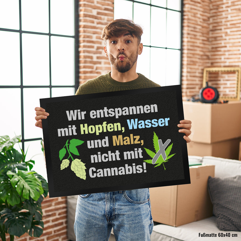 Bier statt Cannabis Fußmatte in 35x50 cm ohne Rand mit Spruch Entspannung mit Bier nicht Cannabis