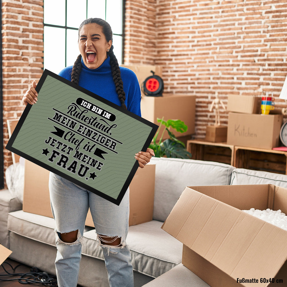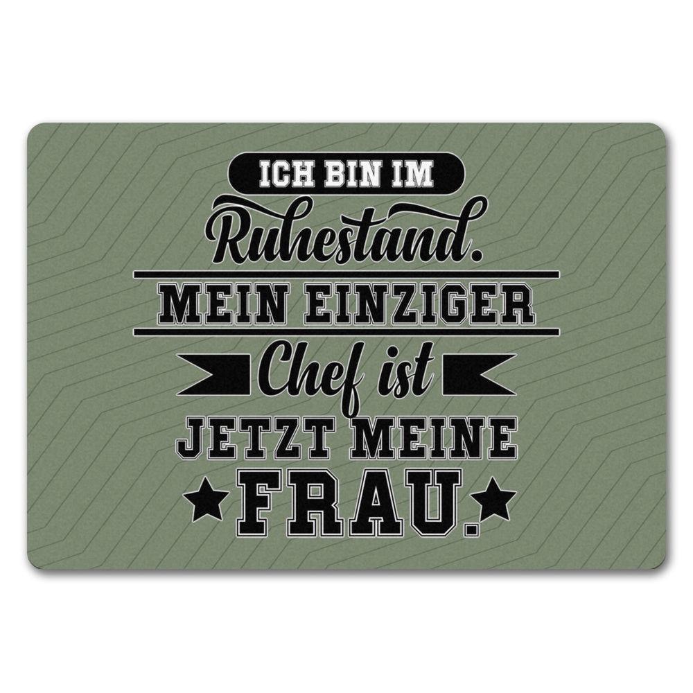 - Die lustige Fußmatte mit Ruhestand-Motiv ist die perfekte Geschenkidee für Männer, die in den Vorruhestand gehen. Unsere Fußmatten gibt es in verschiedenen Größen und Ausführungen, sodass man jeden Hausflur optimal verzieren kann.