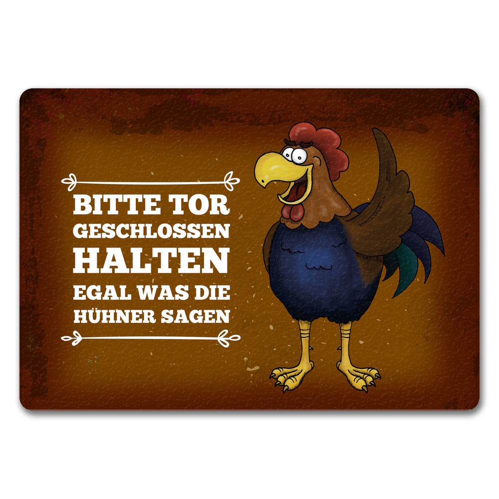 Tor geschlossen halten, egal was die Hühner sagen Türhänger mit Hahn Motiv