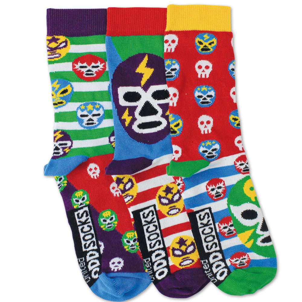 Diese Oddsocks Wrestling Maske Socken sind der Knaller! Der 3er Set besteht aus drei einzelnen, beliebig kombinierbaren Socken mit einem coolen Wrestlingmasken-Muster. Die Größe reicht von 30,5-39 und die Socken bestehen aus 88 % Baumwolle, 10 % Polyamid und 2 % Elastan. Sie lassen sich bequem in der Maschine waschen. Stelle deinen eigenen Look zusammen und überrasche Freunde und Familie! Dieses 3er Set lässt dein Outfit absolut einzigartig wirken und ist ein unverzichtbarer Begleiter für alle Fashionistas. Mit diesen Oddsocks Wrestling Maske Socken bist du immer einen Schritt voraus!