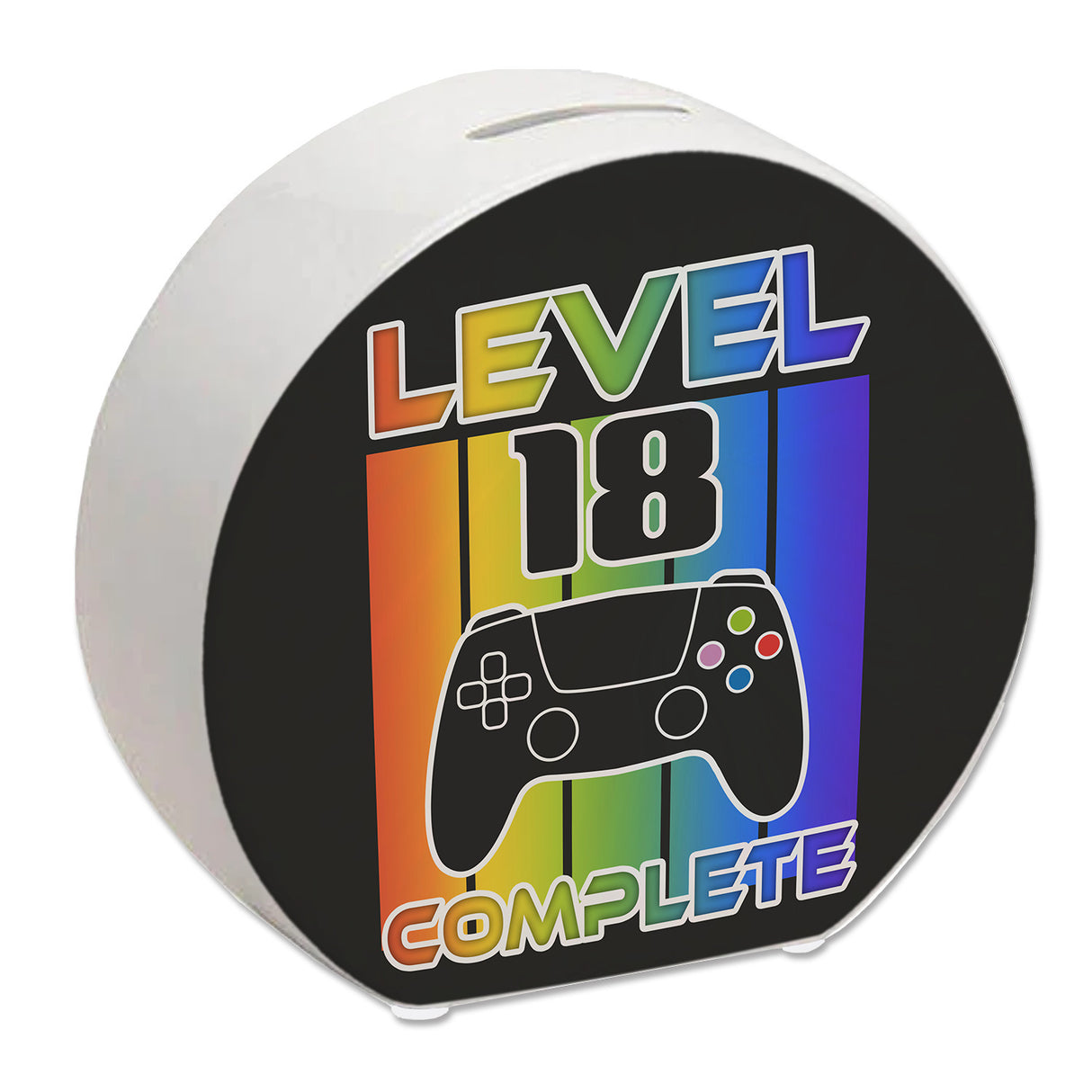 18. Geburtstag Gamer Spardose mit Spruch Level 18 complete - Keramik ist auf Lager und wird versandt, sobald es wieder verfügbar ist