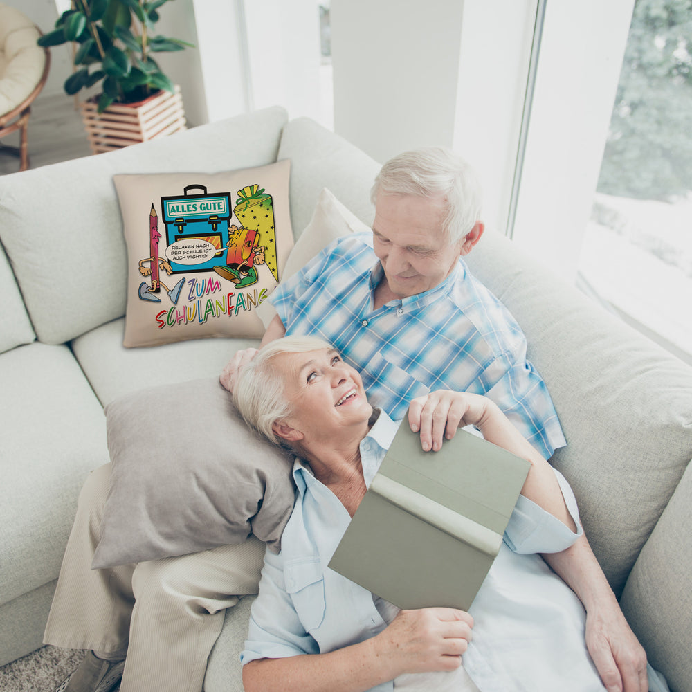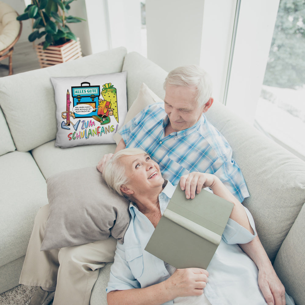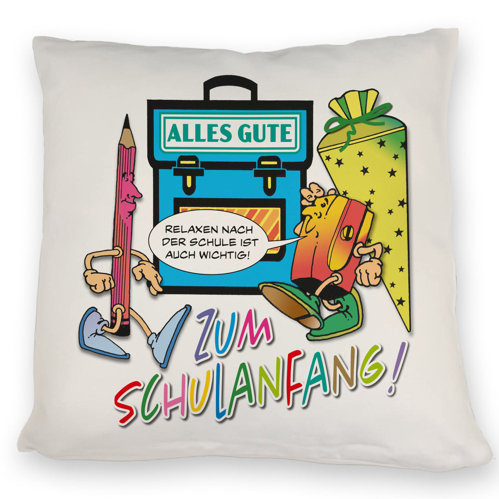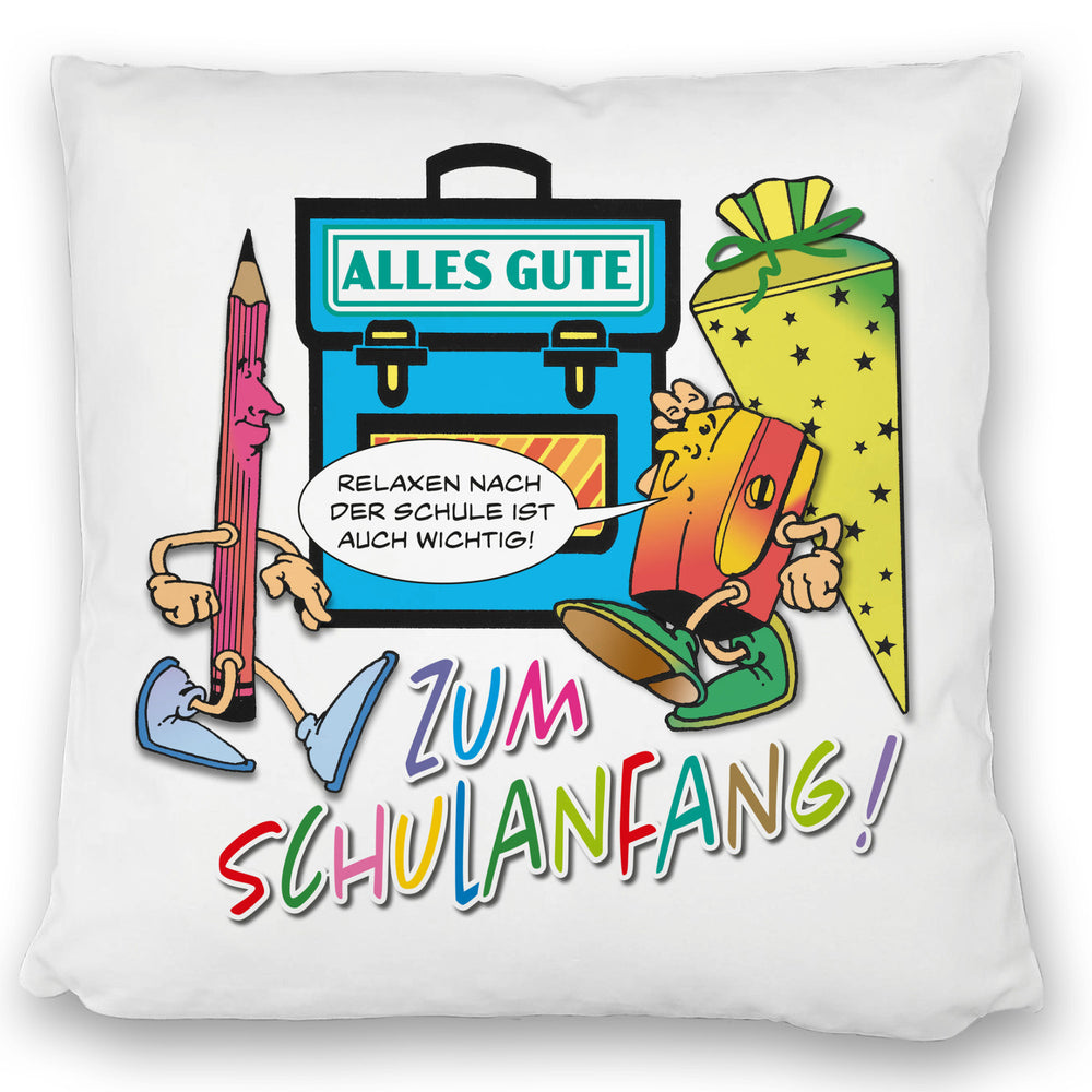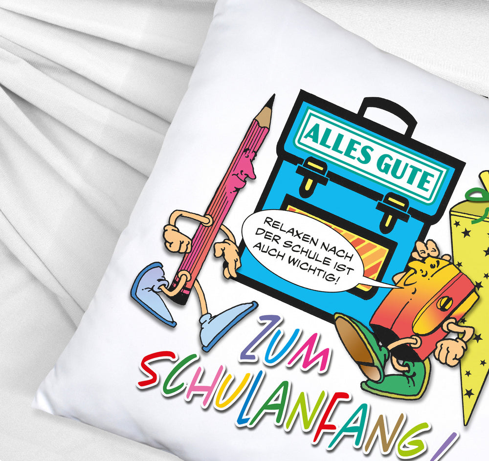 Alles Gute zum Schulanfang Kissen mit lustigen Schulmotiven