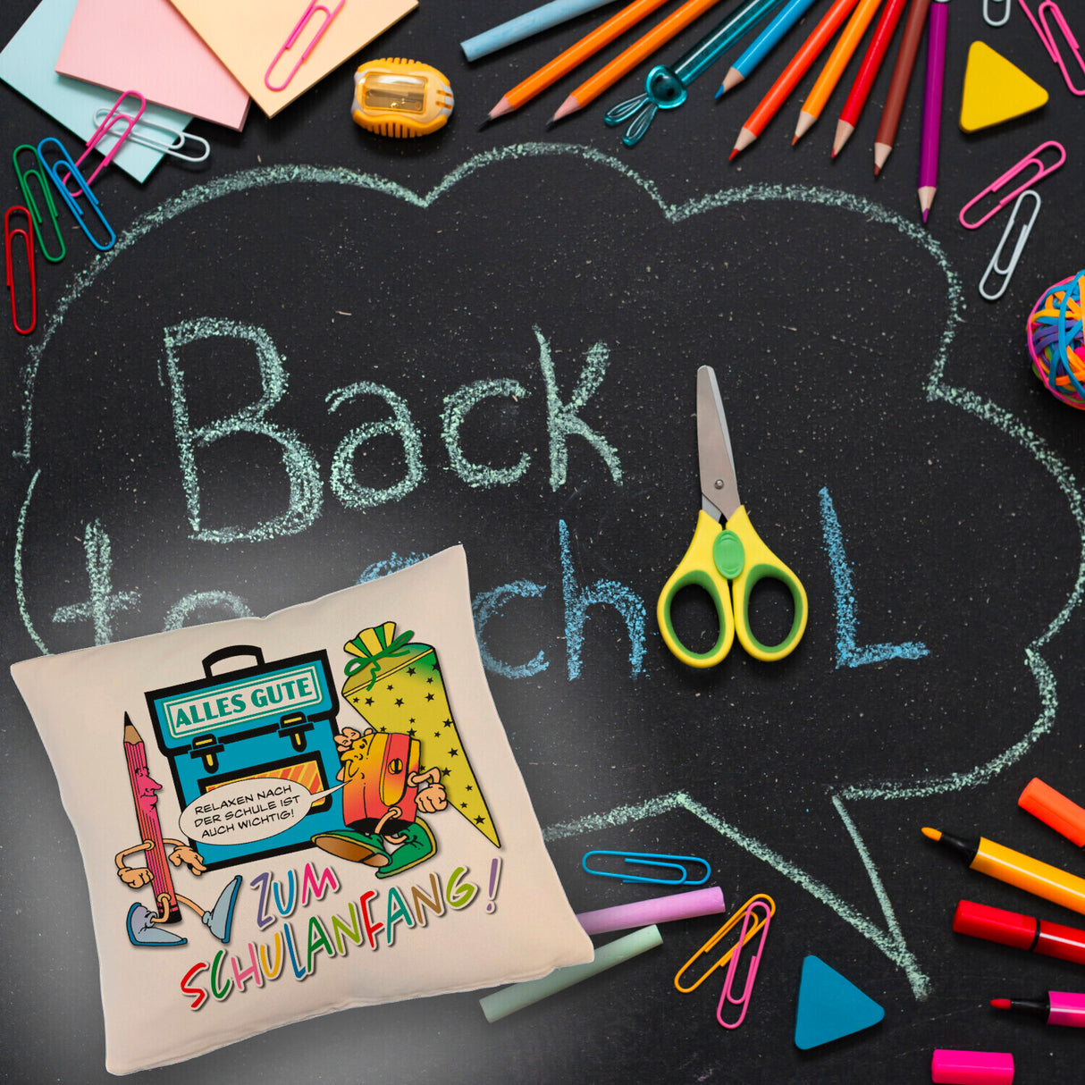 - Entdecke das perfekte Kissen für jeden Schulbegeisterten. Mit dem verspielten Design voller bunter Schulmotive. Mach auch ab und zu eine Pause vom Lernen, um deine Kreativität zu steigern und wieder neue Kraft zu schöpfen.