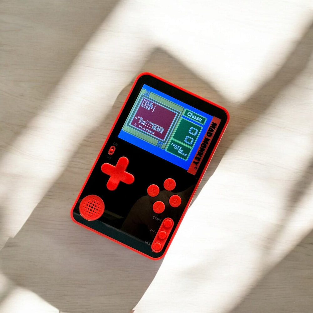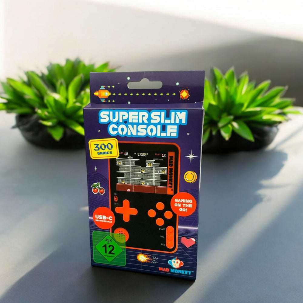 - Diese ultradünne Mini-Konsole ist nur 7 mm dick und knapp 10 cm lang – perfekt für unterwegs! Das coole Rot-Schwarz-Design passt in jede Tasche. Das 2,56 Zoll Display und die klassischen Steuerknöpfe garantieren Retro-Feeling pur. Einfach aufladen mit dem mitgelieferten USB-C-Kabel und loszocken!