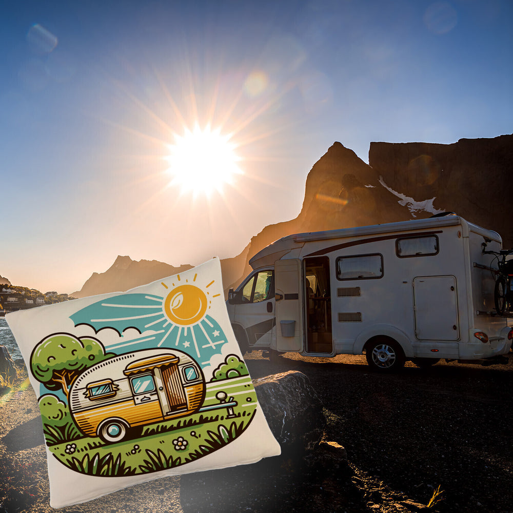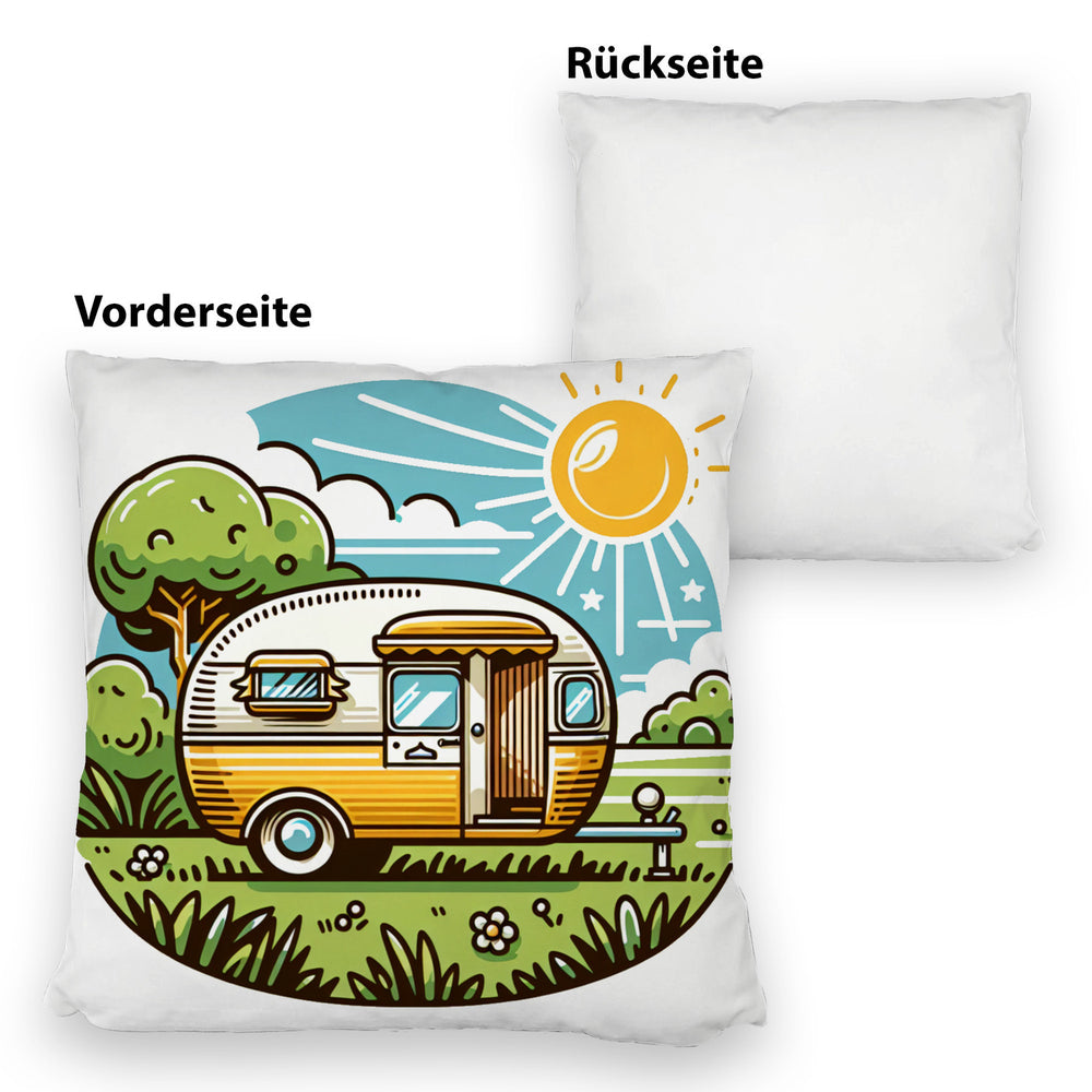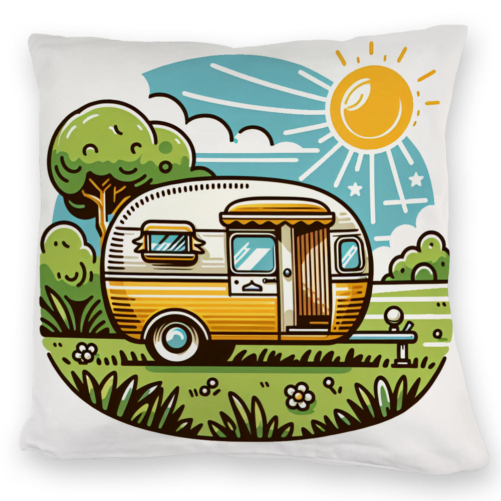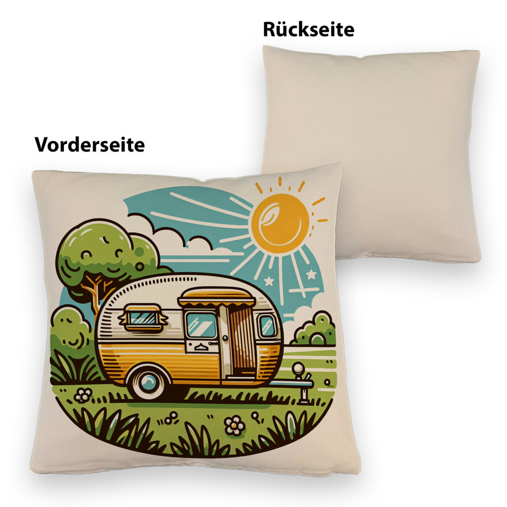 - Sagt "Hallo" zu eurem neuen treuen Weggefährten: dem Campingmobil Wohnwagen Kissen! Holt euch das Gefühl von Freiheit direkt ins Wohnzimmer. Mit seinem nostalgischen Retro Caravan, der majestätisch auf einer sonnenbeschienenen, saftigen grünen Wiese parkt, ist dieses Kissen ein echter Hingucker für alle Camping-Liebhaber.