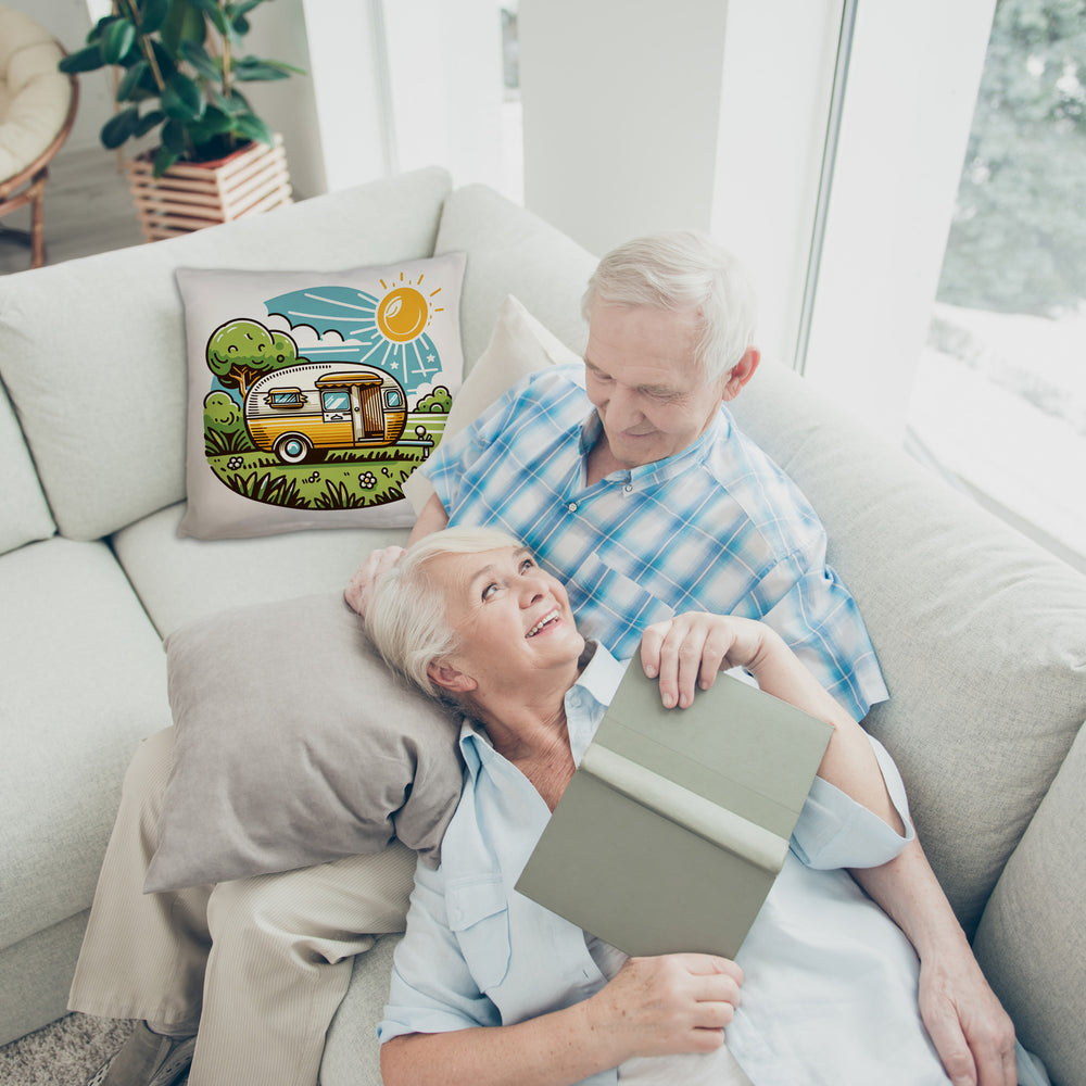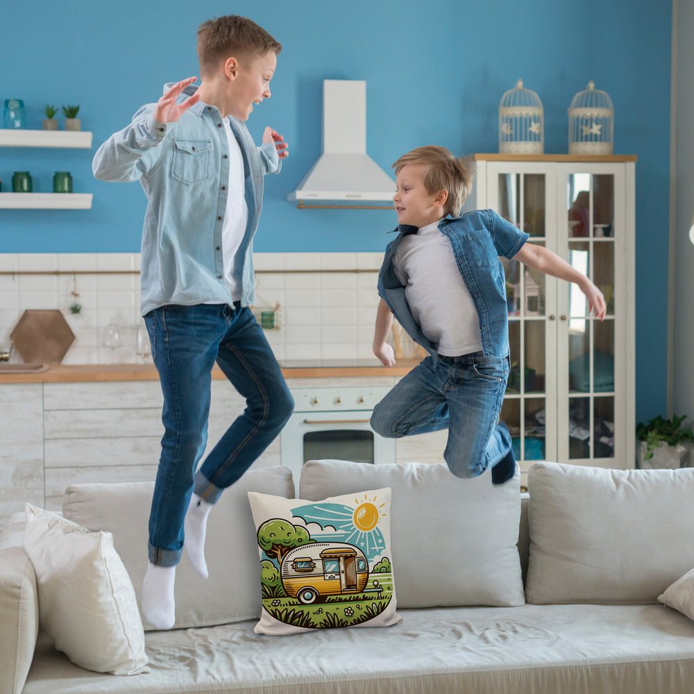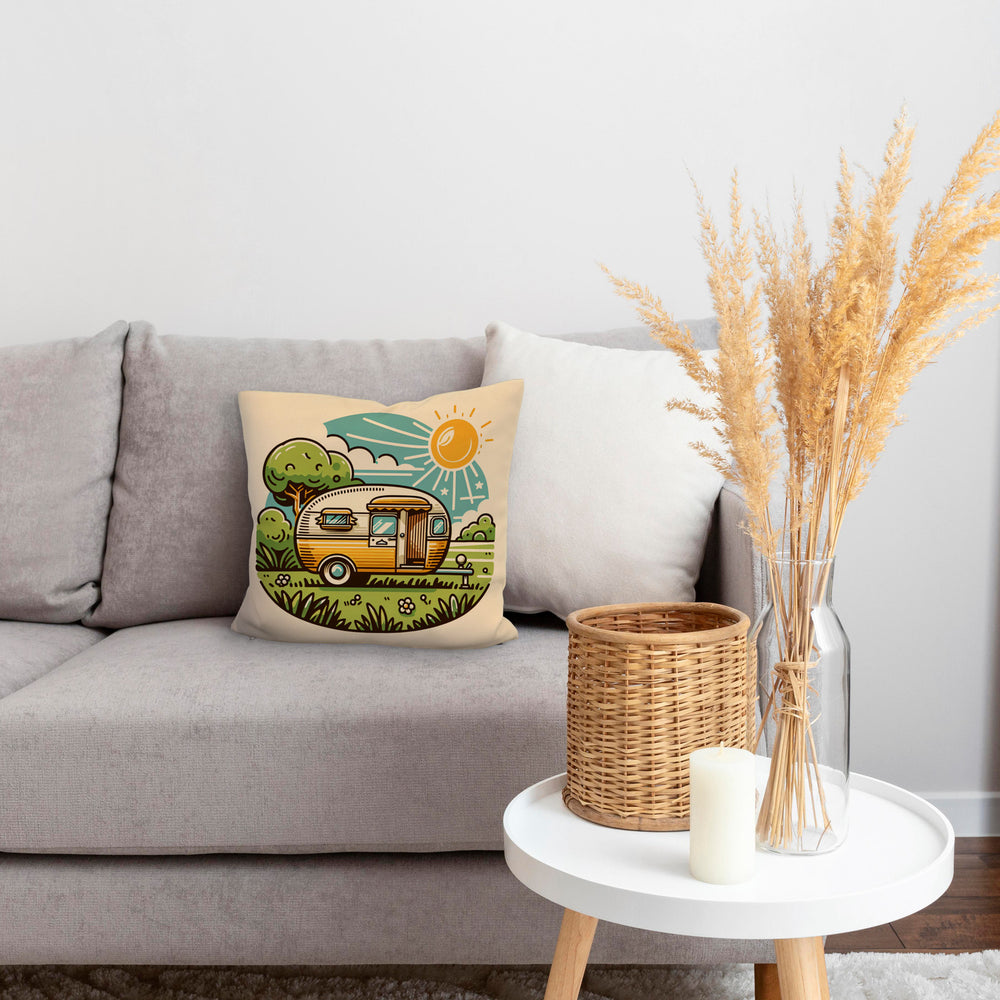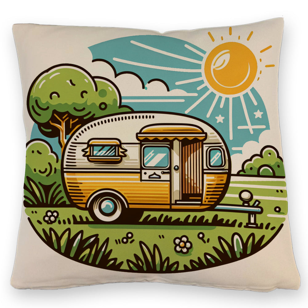 - Sagt "Hallo" zu eurem neuen treuen Weggefährten: dem Campingmobil Wohnwagen Kissen! Holt euch das Gefühl von Freiheit direkt ins Wohnzimmer. Mit seinem nostalgischen Retro Caravan, der majestätisch auf einer sonnenbeschienenen, saftigen grünen Wiese parkt, ist dieses Kissen ein echter Hingucker für alle Camping-Liebhaber.