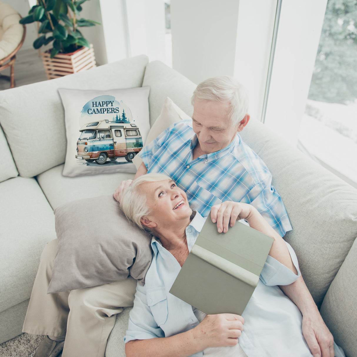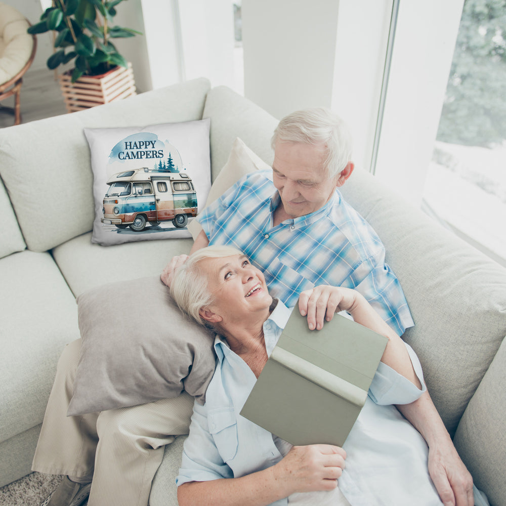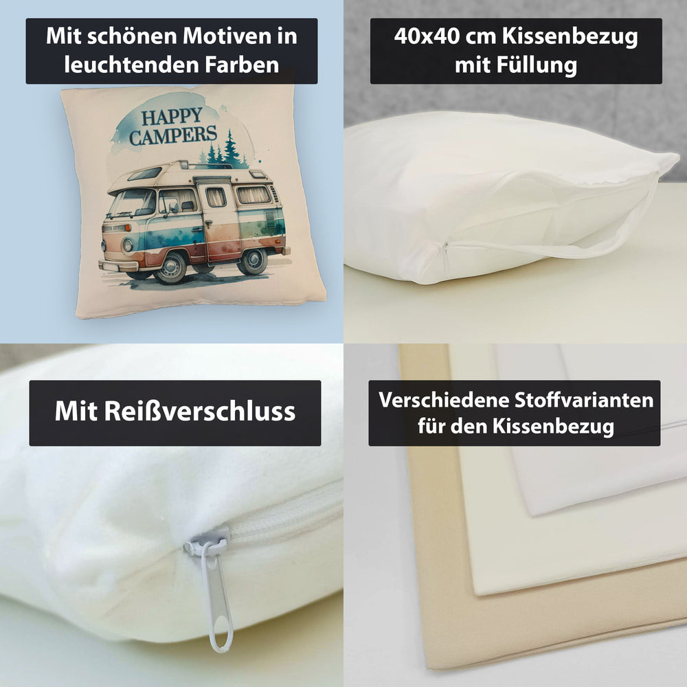 - 1x Campingwagen Kissen mit Spruch Happy Campers in der gewählten Ausführung