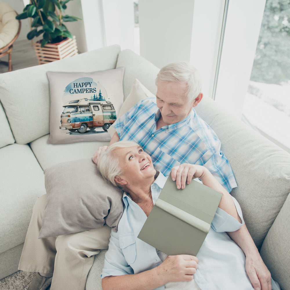 Campingwagen Kissen mit Spruch Happy Campers - Standard ist auf Lager und wird versandt, sobald es wieder verfügbar ist