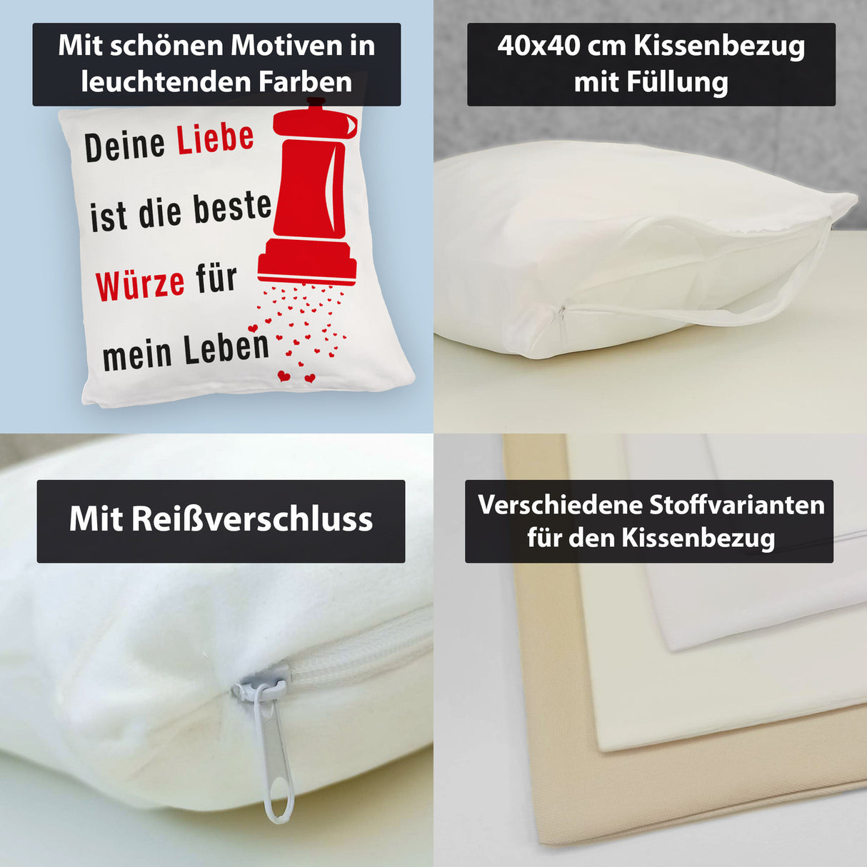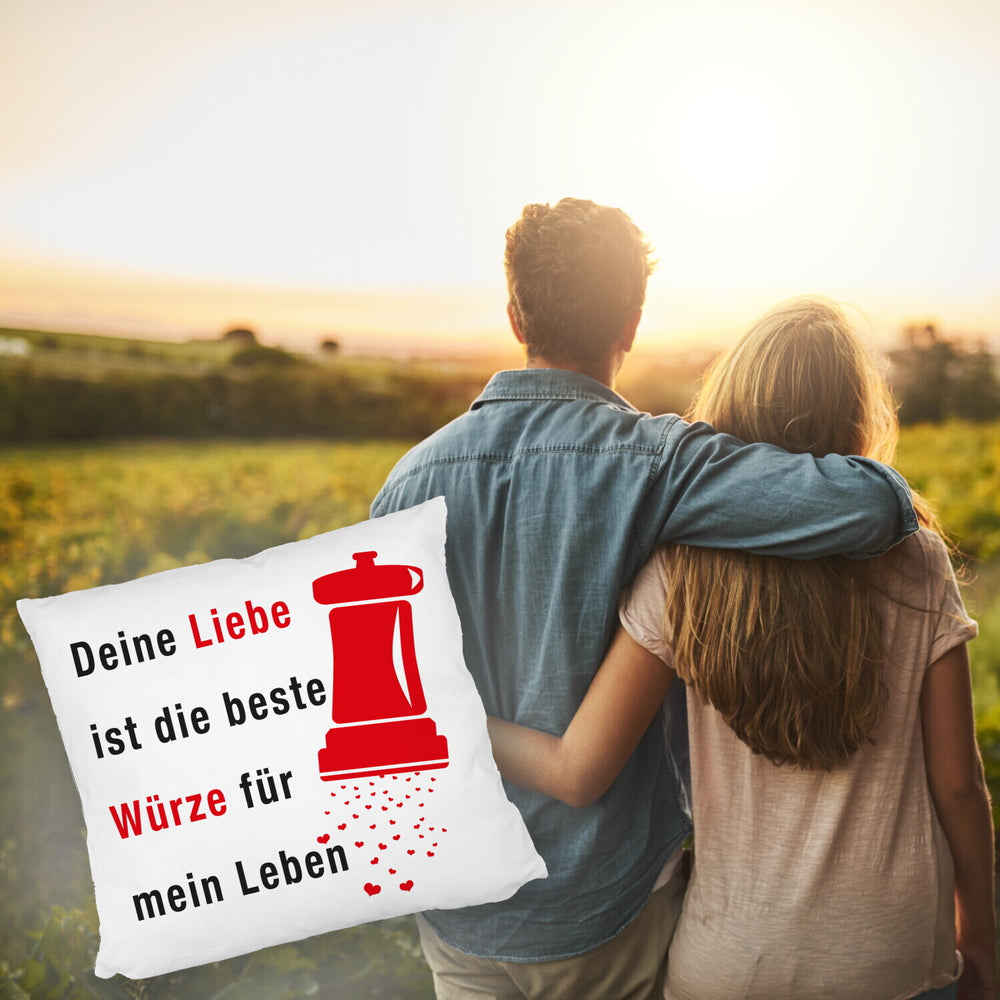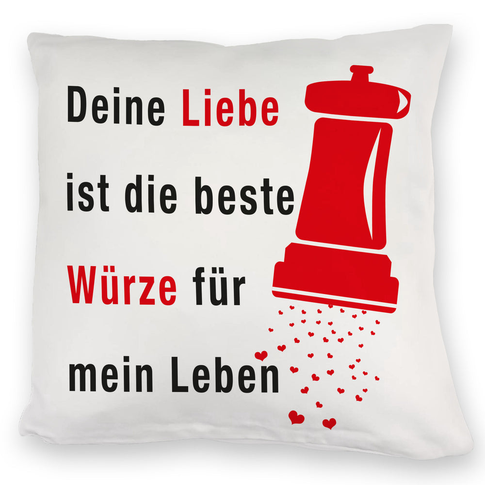 - Dieses bezaubernde Kissen ist das perfekte Accessoire für alle Verliebten da draußen! Mit seinem niedlichen Design zeigt es einen herzförmigen Gewürzstreuer, der kleine Herzchen über dein Leben rieseln lässt. Ein Kissen, das buchstäblich Liebe versprüht und dir ein Lächeln ins Gesicht zaubert!