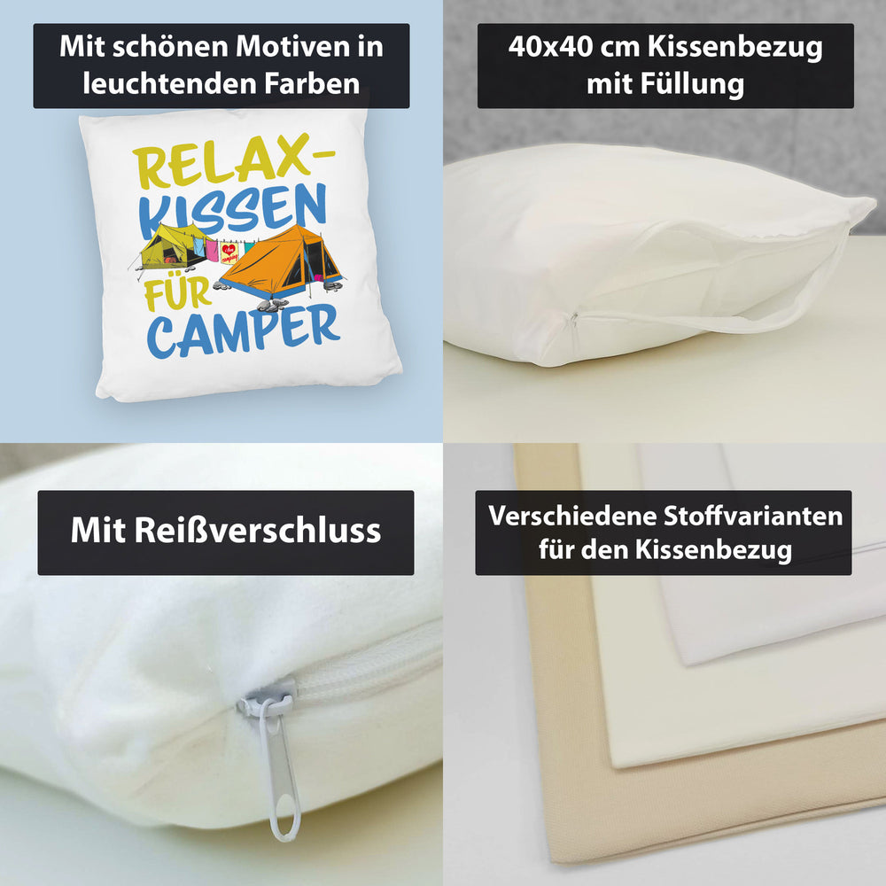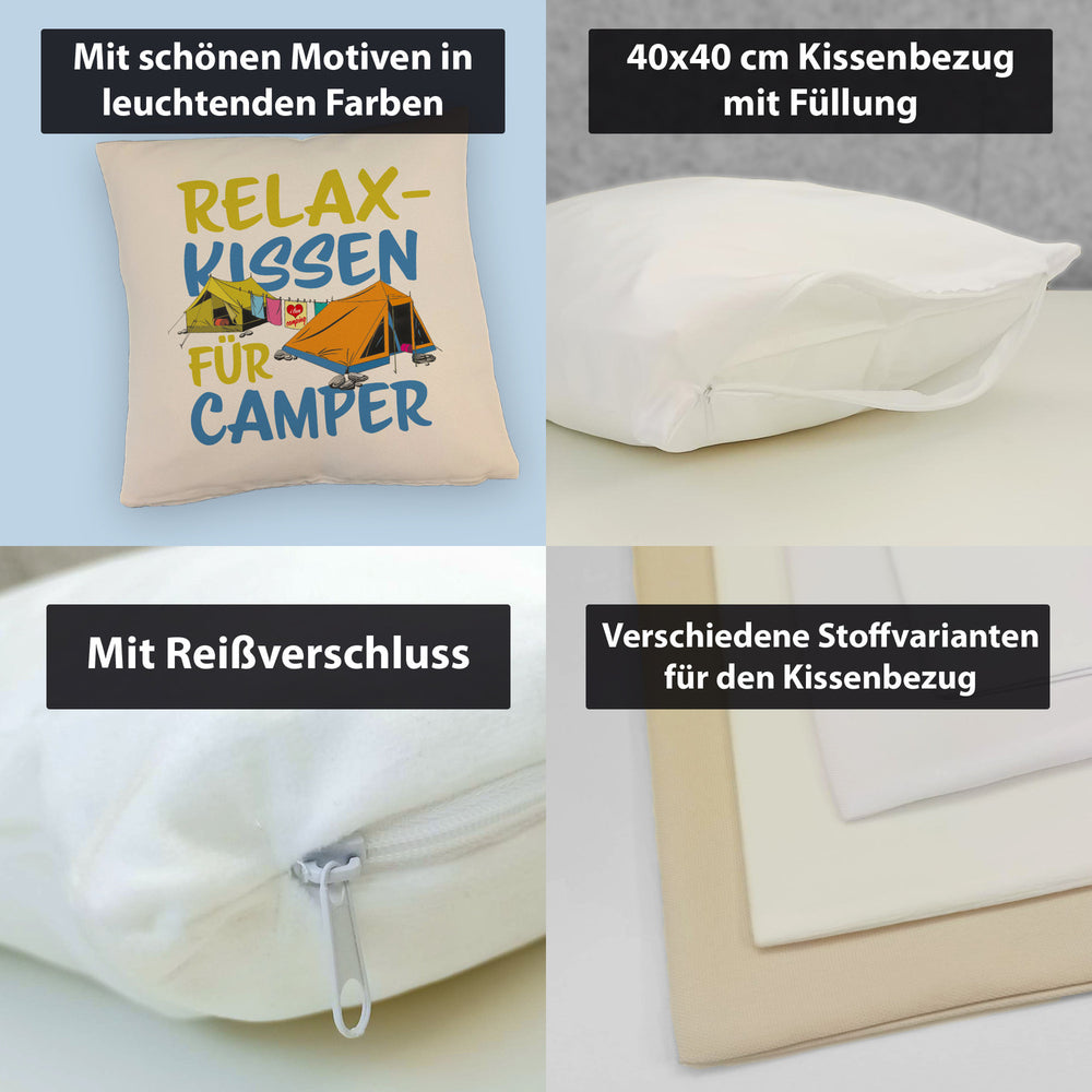 - 1x I love Camping Relax Kissen für Camper mit Zelten in der gewählten Ausführung