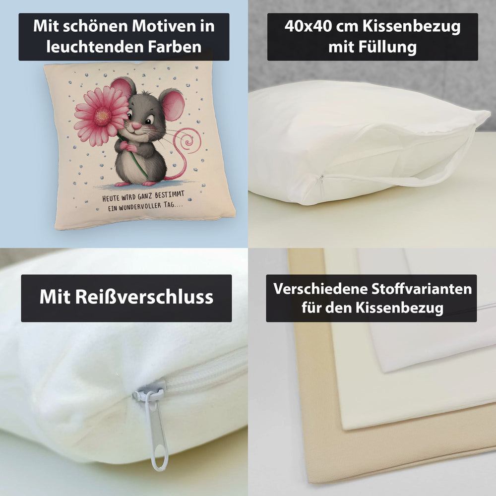 - 1x Maus mit Blume Kissen - wundervoller Tag in der gewählten Ausführung