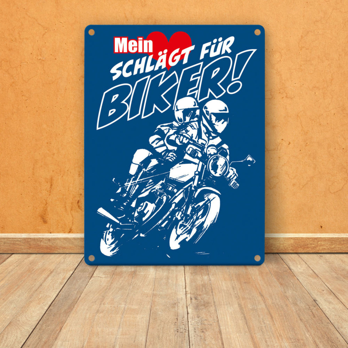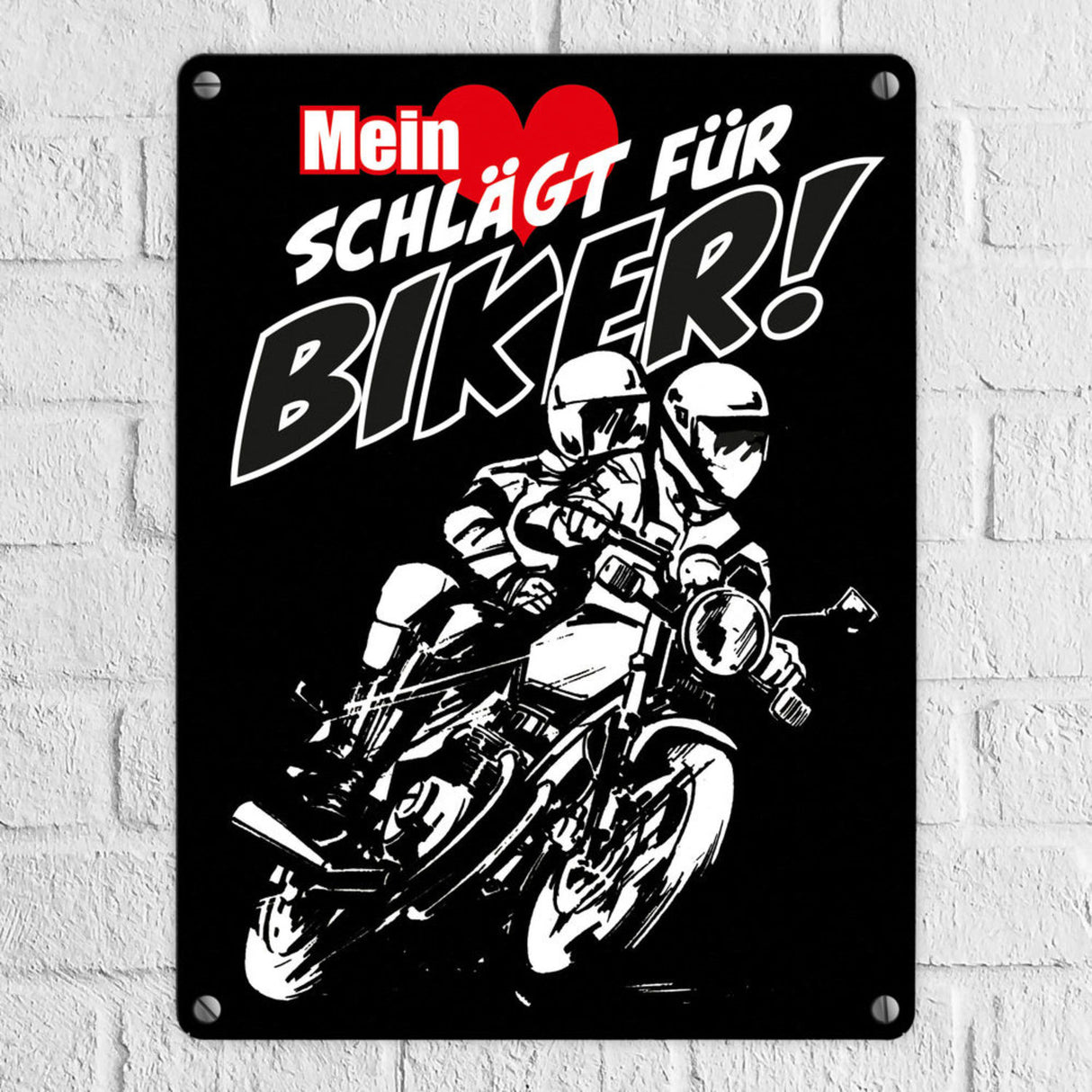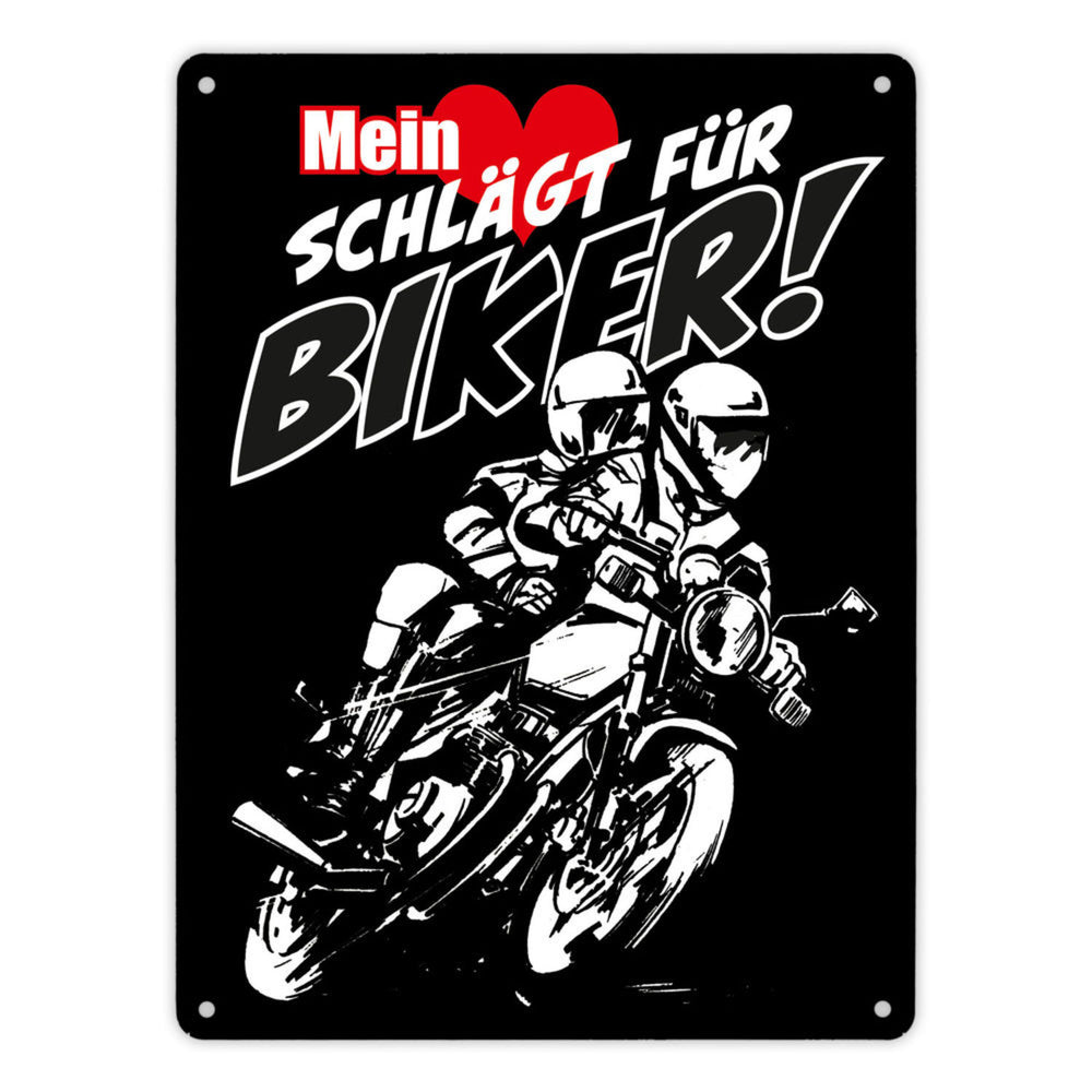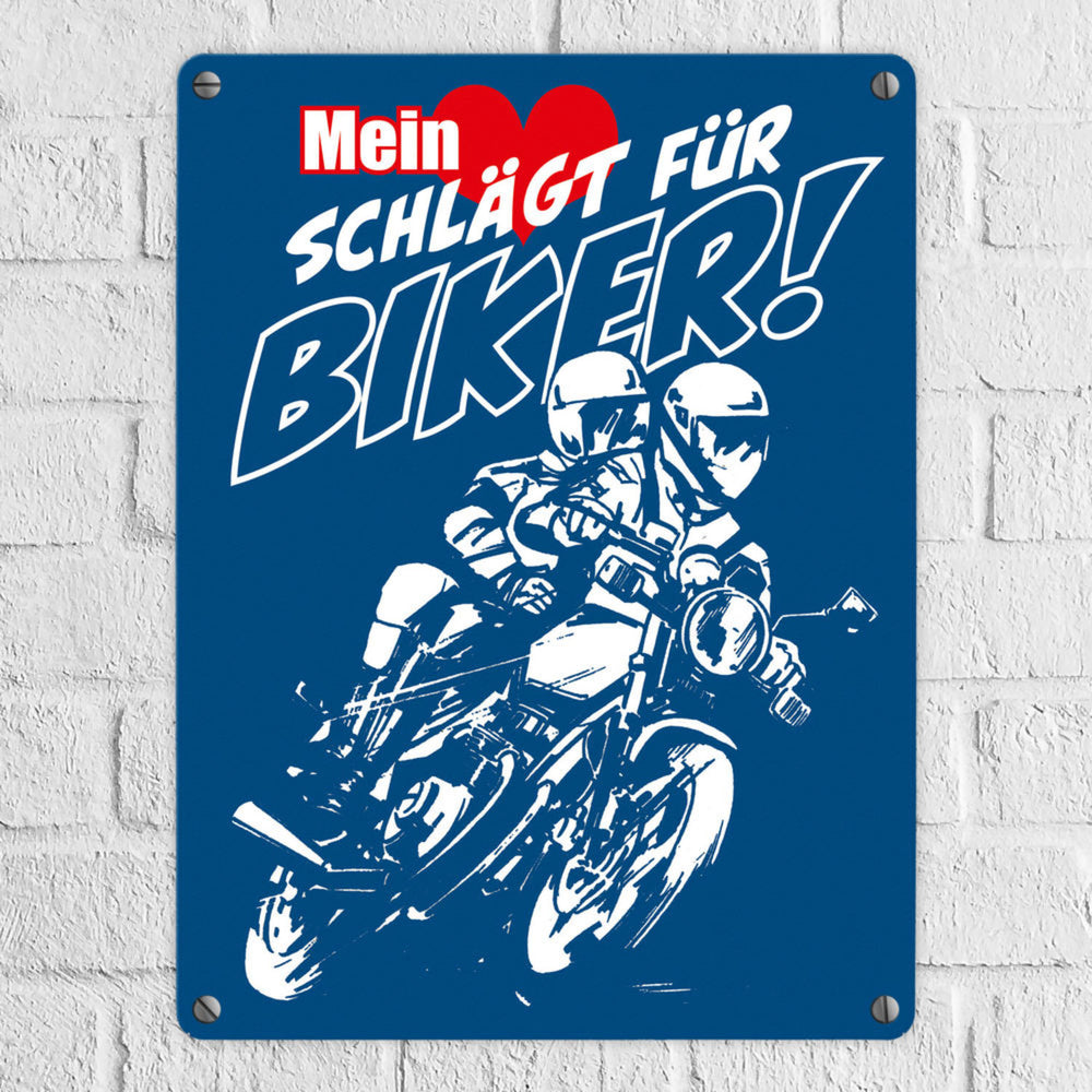 - 1x Metallschild mit Motorrad Mein Herz schlägt für Biker in der gewählten Größe