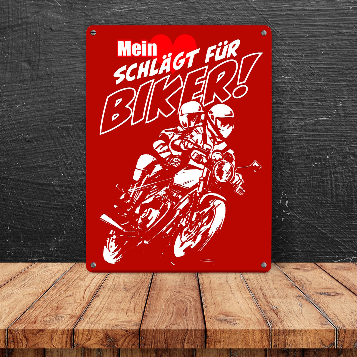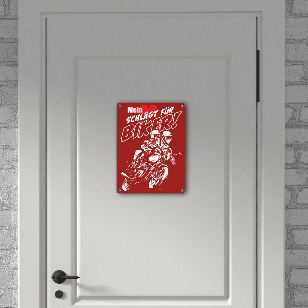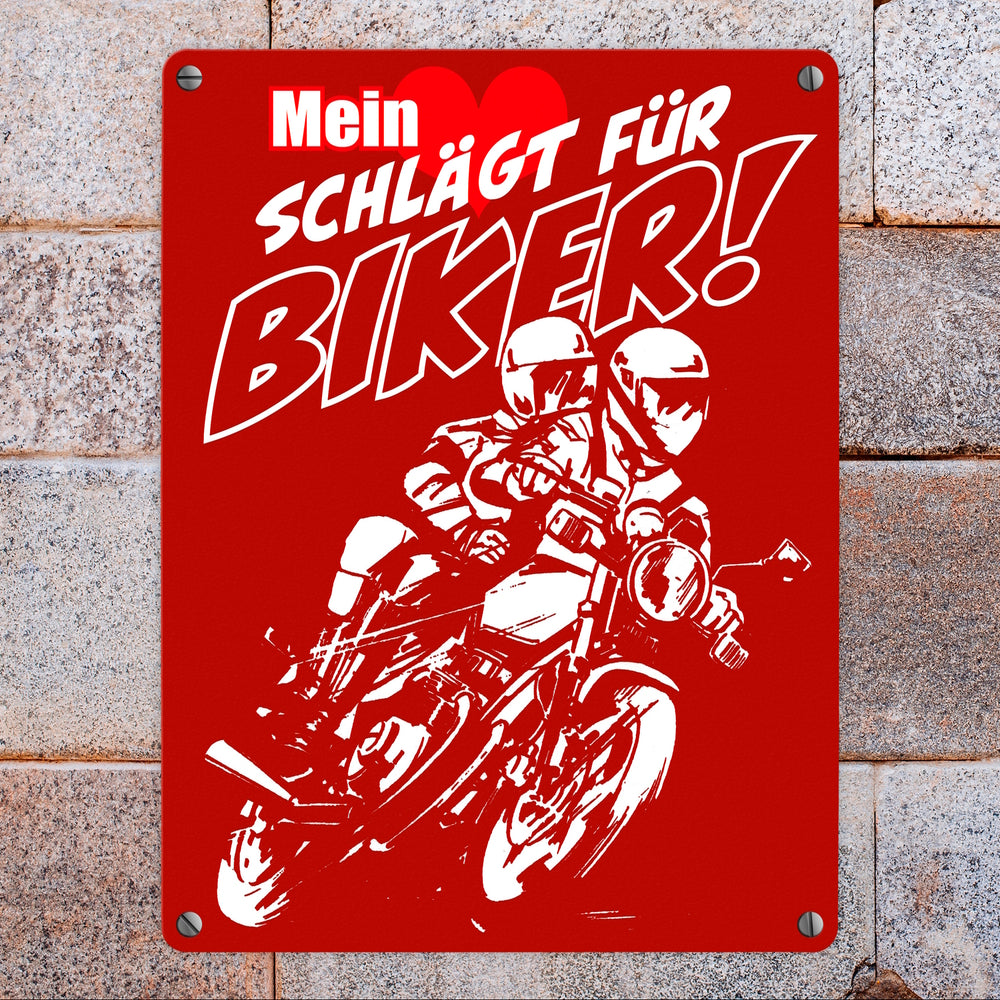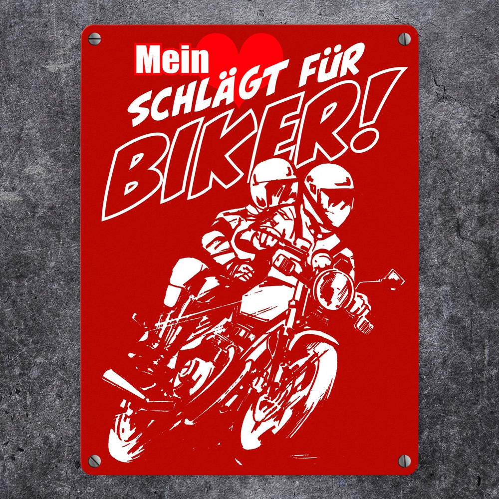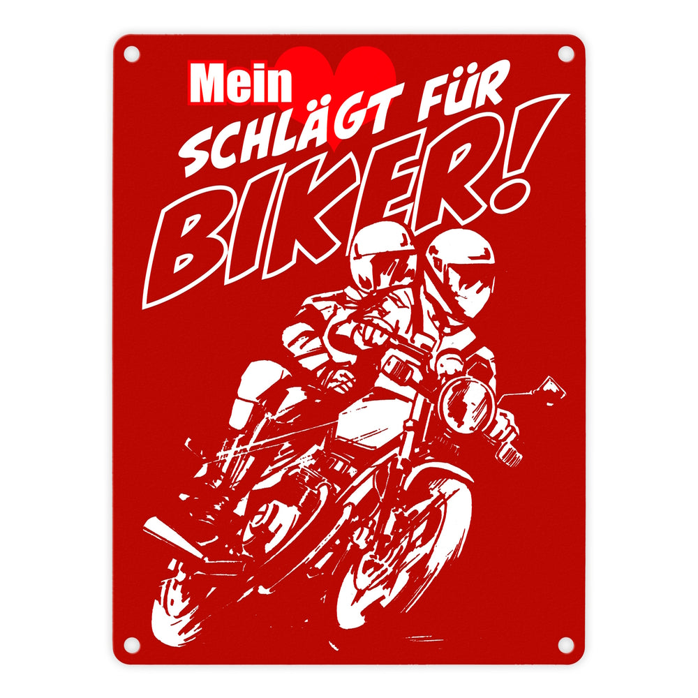 Metallschild mit Motorrad Mein Herz schlägt für Biker - 15x20 cm / Rot ist auf Lager und wird versandt, sobald es wieder verfügbar ist