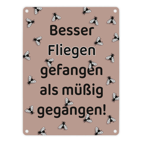 Fliege Metallschild in 15x20 cm mit Spruch Besser Fliegen fangen als faulenzen